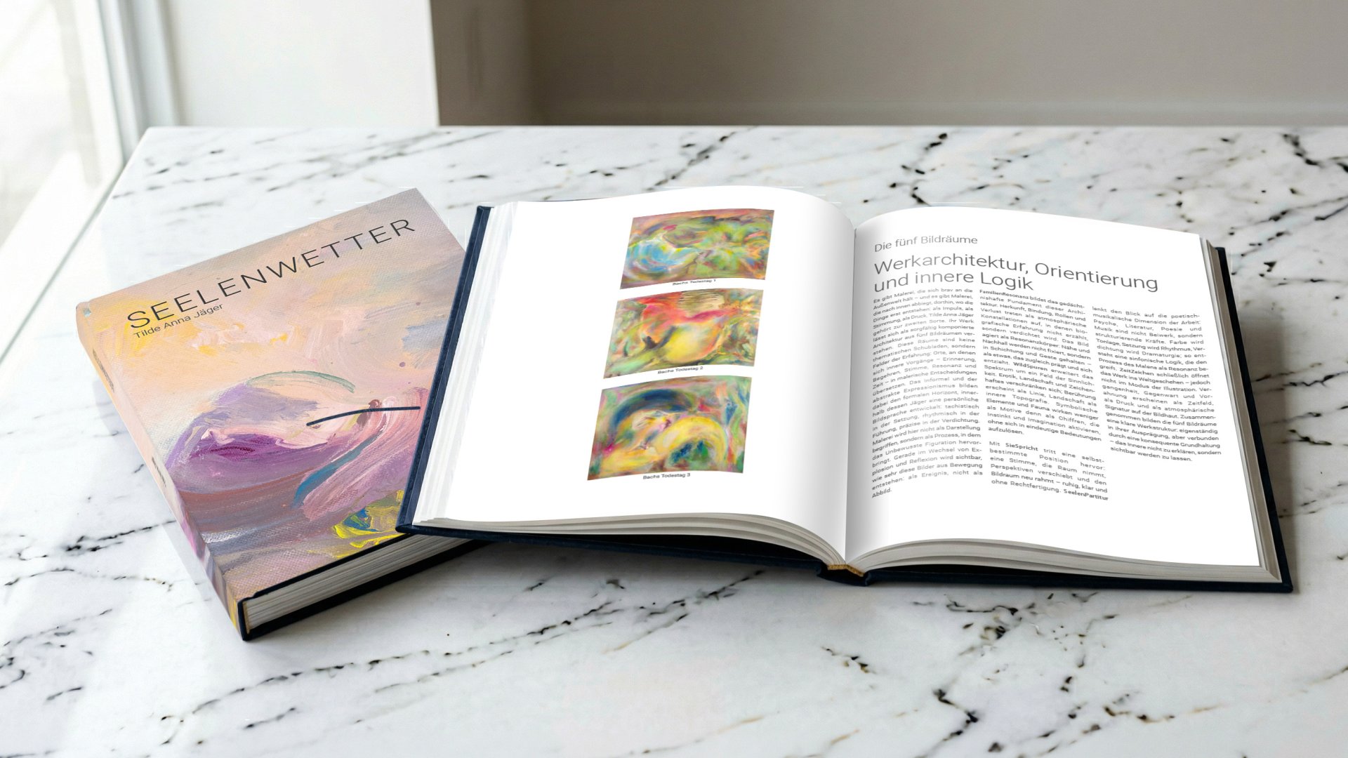 An essential step was the development of the five image spaces: FamilyResonance, WildSpuren, SieSpricht, SeelenPartitur and ZeitZeichen. They give the work orientation without smoothing out its ambiguity and make visible what is explicitly described in the book concept as work architecture, orientation and inner logic. Parallel to this, "Seelen-Ökologie statt Oberflächenkultur" (Soul Ecology instead of Surface Culture) was created as a central approach to the content, as well as the planned artist's book "Seelenwetter" (Soul Weather) as an editorial framework, which linguistically deepens the work and contextualizes it for exhibitions, institutions and later estate management. The book is designed as a path through the oeuvre and works with building blocks such as Prologue, The Voice, Interpretations, Thoughts, Work Architecture, Orientation, Inner Logic and Coordinates.