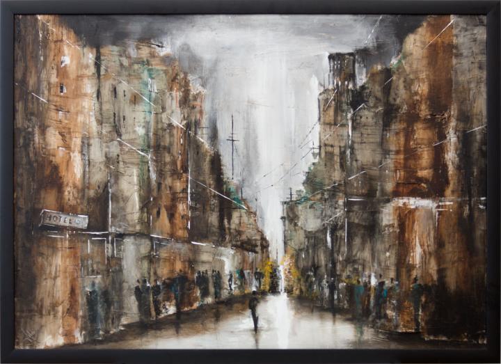 Sabolić was born in 1971 in Varaždin (HR) and studied art with Prof. Mersad Berber from 1990-93. From 1993 Sabolić devoted himself completely to painting and organized his first solo exhibition already in 1997. To date, numerous solo and group exhibitions followed in Croatia, Slovenia, Czech Republic, Indonesia, Germany and Austria. Sabolić works mostly in oil technique on canvas or wooden panels. Soft, harmonious beige and gray tones form the basis, accentuated by a defining black or other partial coloration. With the synthesis of abstract structures and fragments, Sabolić creates unique compositions with high recognition value. He often takes a surrealistic look at the world, and in the city views he reveals his strong connection to his hometown of Varaždin.