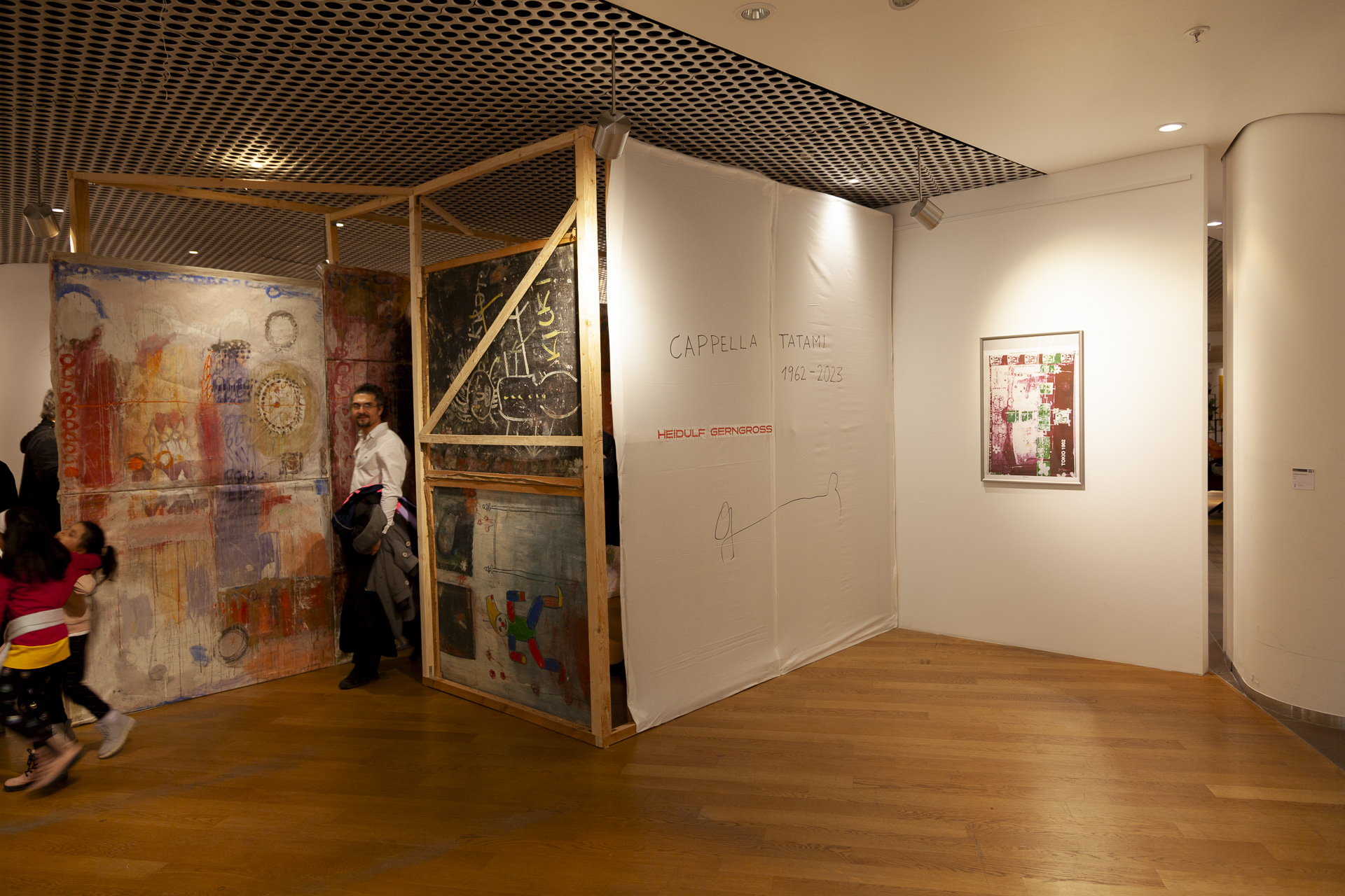 Im Fokus der Schau steht eine Kapelle, die nicht nur als sakraler Raum, sondern auch als Symbol für die tiefgründige und spirituelle Dimension in Gerngross' Werk fungiert. Sie beherbergt wichtige Arbeiten aus Gerngross' Zeit in Tokio und Wien im Jahre 1962, darunter Die zwölf Apostel und Jeder Mensch ist heilig. Diese Werke spiegeln die intensive Auseinandersetzung des Künstlers mit der japanischen und der österreichischen Kultur und seine Suche nach spiritueller Bedeutung und Ausdruck wider. Gerngross gelingt es, durch seine Kunst eine Brücke zwischen Ost und West zu schlagen und eine universelle Sprache zu finden, die tief in der menschlichen Seele verankert ist.