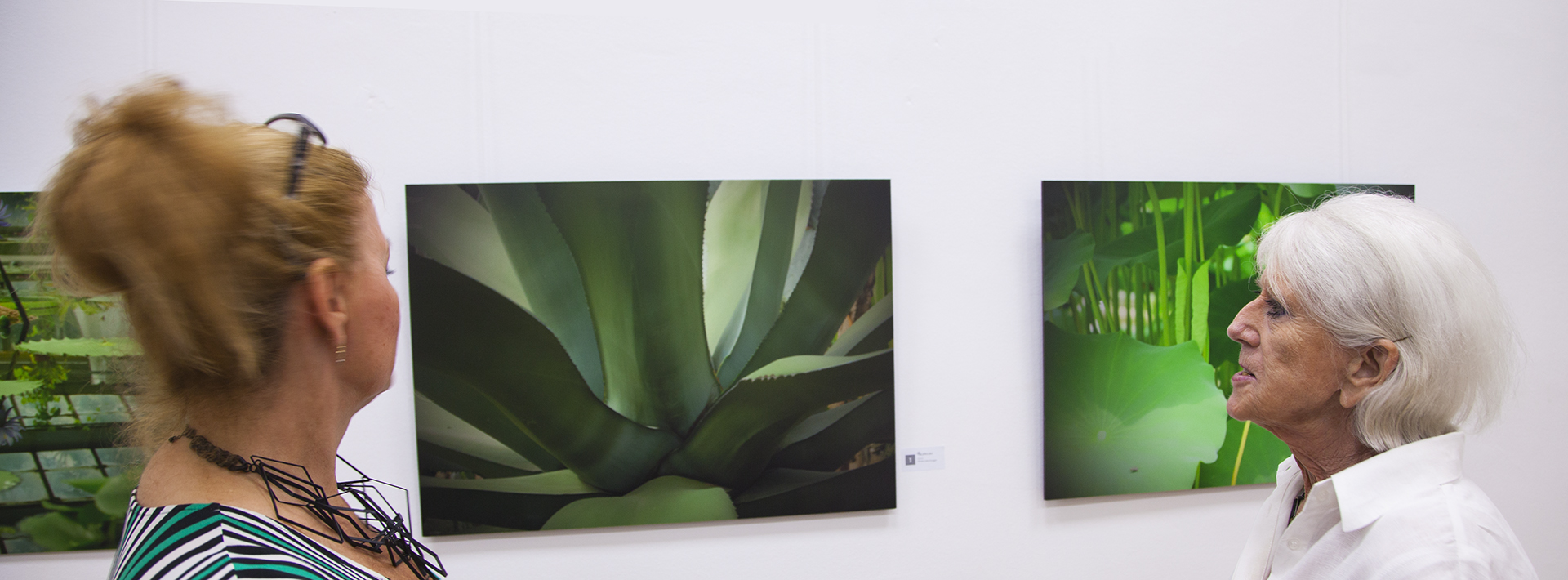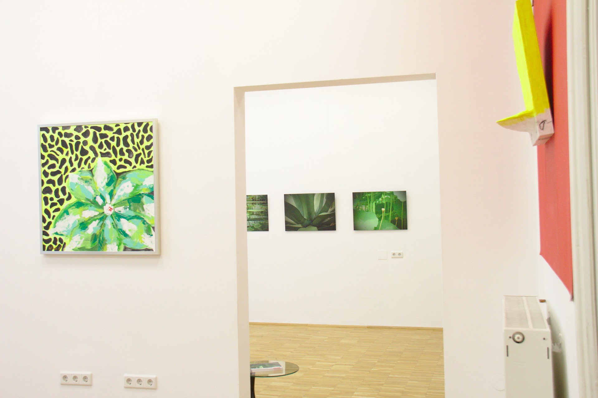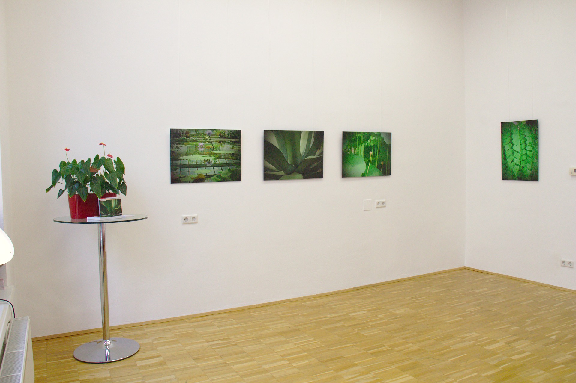 Heinke Lüttschwager präsentiert uns REFLEXIONES VIRIDES, berührende Bilder,  die uns in die unendlichen Weiten des Grüns blicken lassen. Die Arbeiten wirken vollkommen ausbalanciert, ruhig und kühl, laden gerade zum Innehalten und Reflektieren ein. Grün als eine Farbe von allergrößter Symbolkraft, zugleich beruhigend und inspirierend, Hilfsbereitschaft, Toleranz und Zufriedenheit fördernd. Die aktuellen Werke Agave, Farn, Lotus, der See Genezareth und Spiegelungen zeugen vom Paradies und geben und schaffen eine ästhetische Anmutung göttlicher Schöpfung.