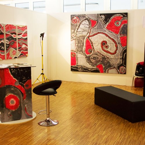 Im Mittelpunkt stand unser Kurztrailer und natürlich vor allem die modularen Styros von hannana. Die Künstlerin gestaltete eigens für die Kunstmesse drei Unikate: