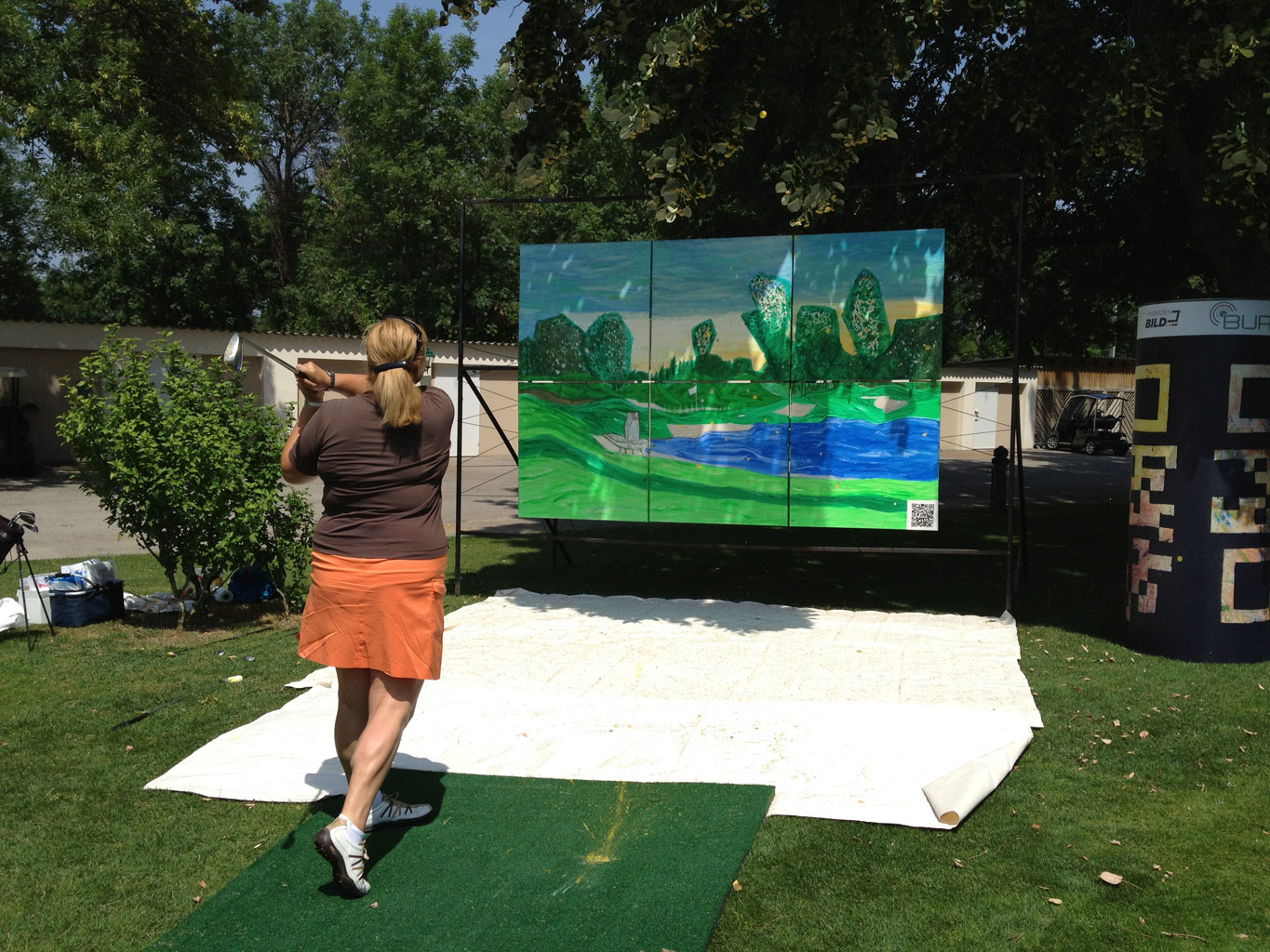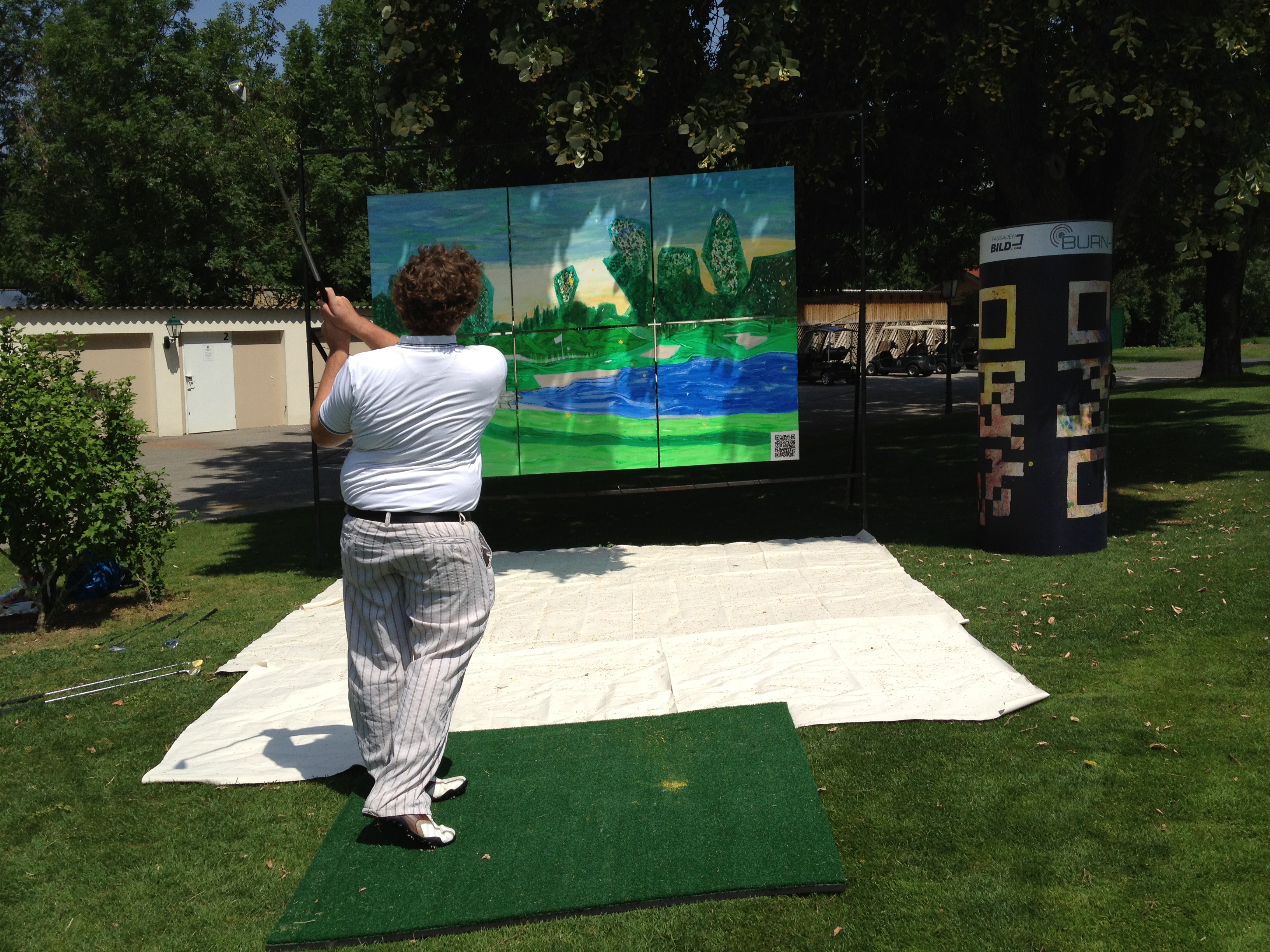 Die Teilnehmer:innen hinterließen ihre Golfballabdrücke direkt auf der Leinwand und wurden so selbst Teil des Kunstwerks. Das schuf Beteiligung, Erinnerung und hohe emotionale Bindung.