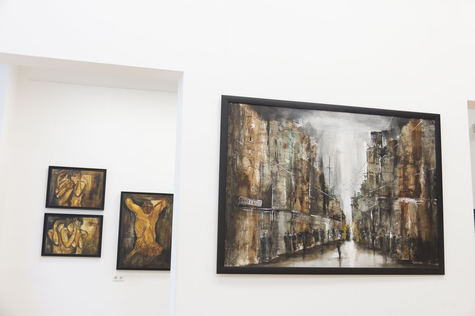 Die starke Ausdruckskraft und Dramatik der psychologisch aufgeladenen Kompositionen überzeugen. Wie in früheren Arbeiten verwendet Sabolić konsequent eine begrenzte Auswahl an Schwarz, Braun, Grün und Ocker, das im spürbaren Kontrast zum weißen Hintergrund steht. Er spielt dabei virtuos mit Materialien und Techniken, kombiniert den reliefartigen, gespachtelten Untergrund mit transparentem Farbüberzug.