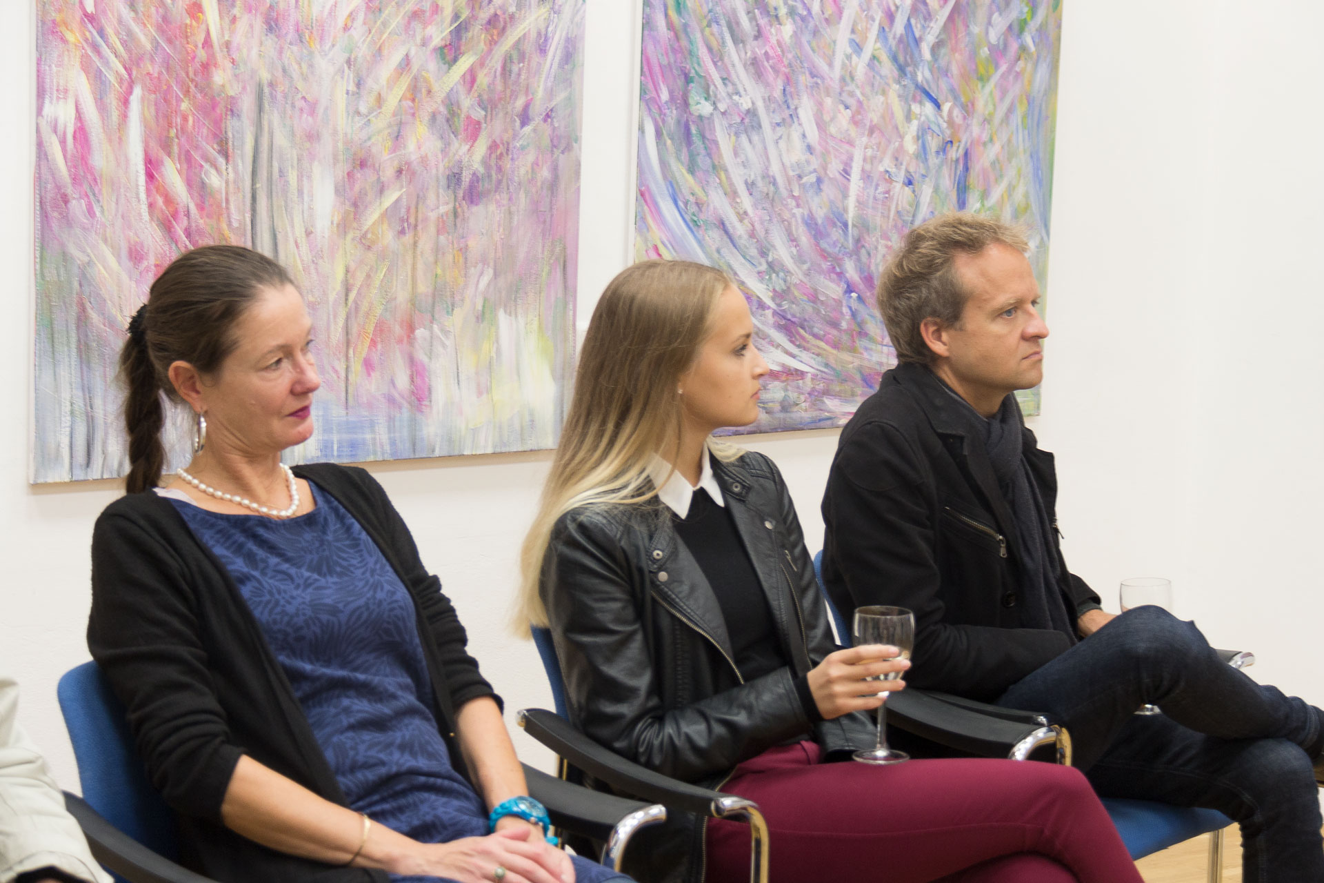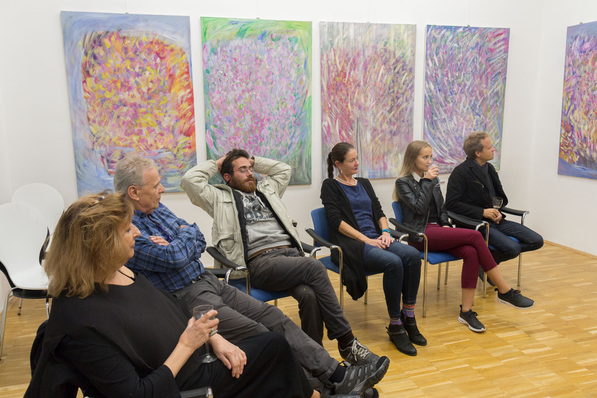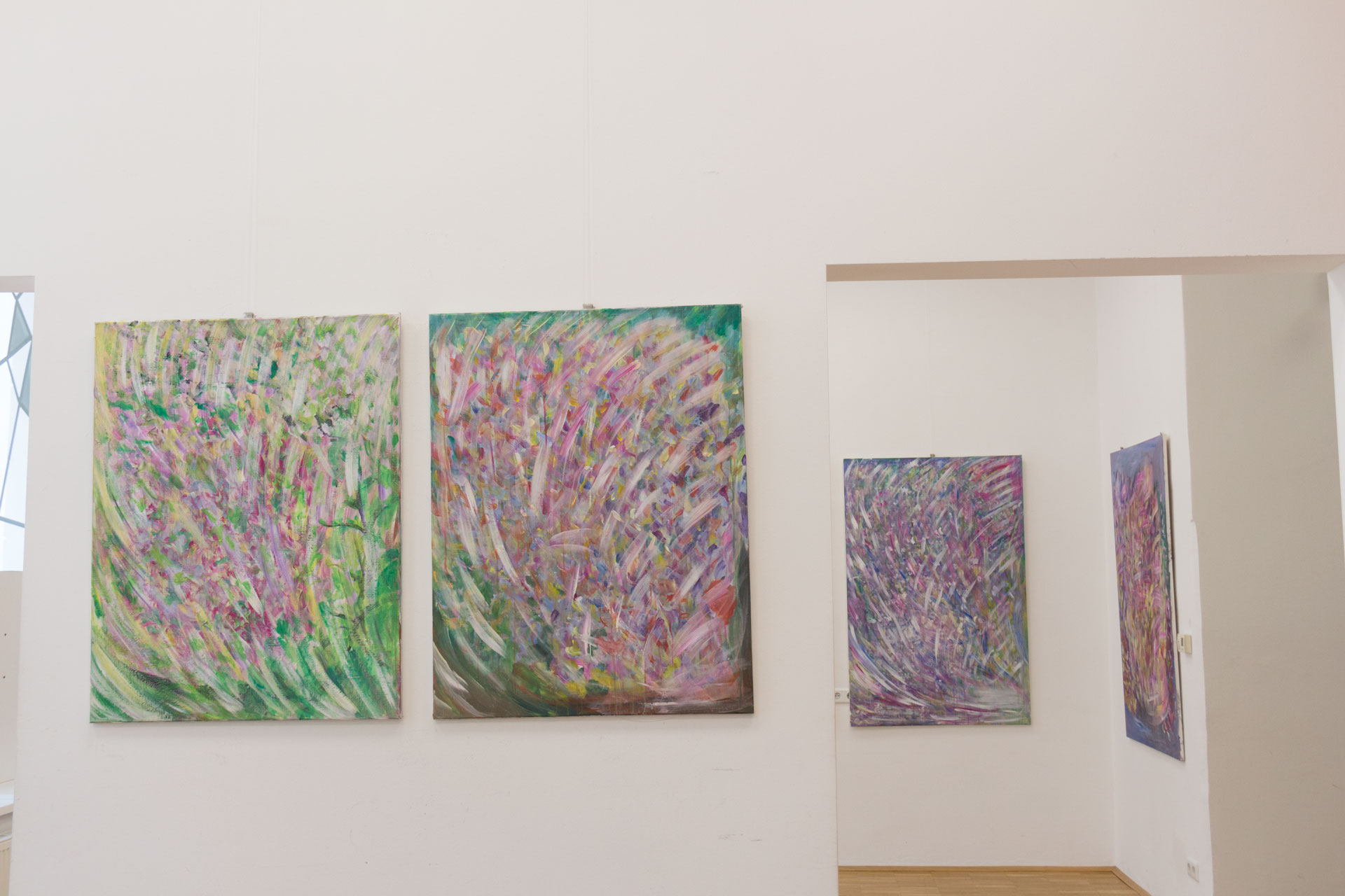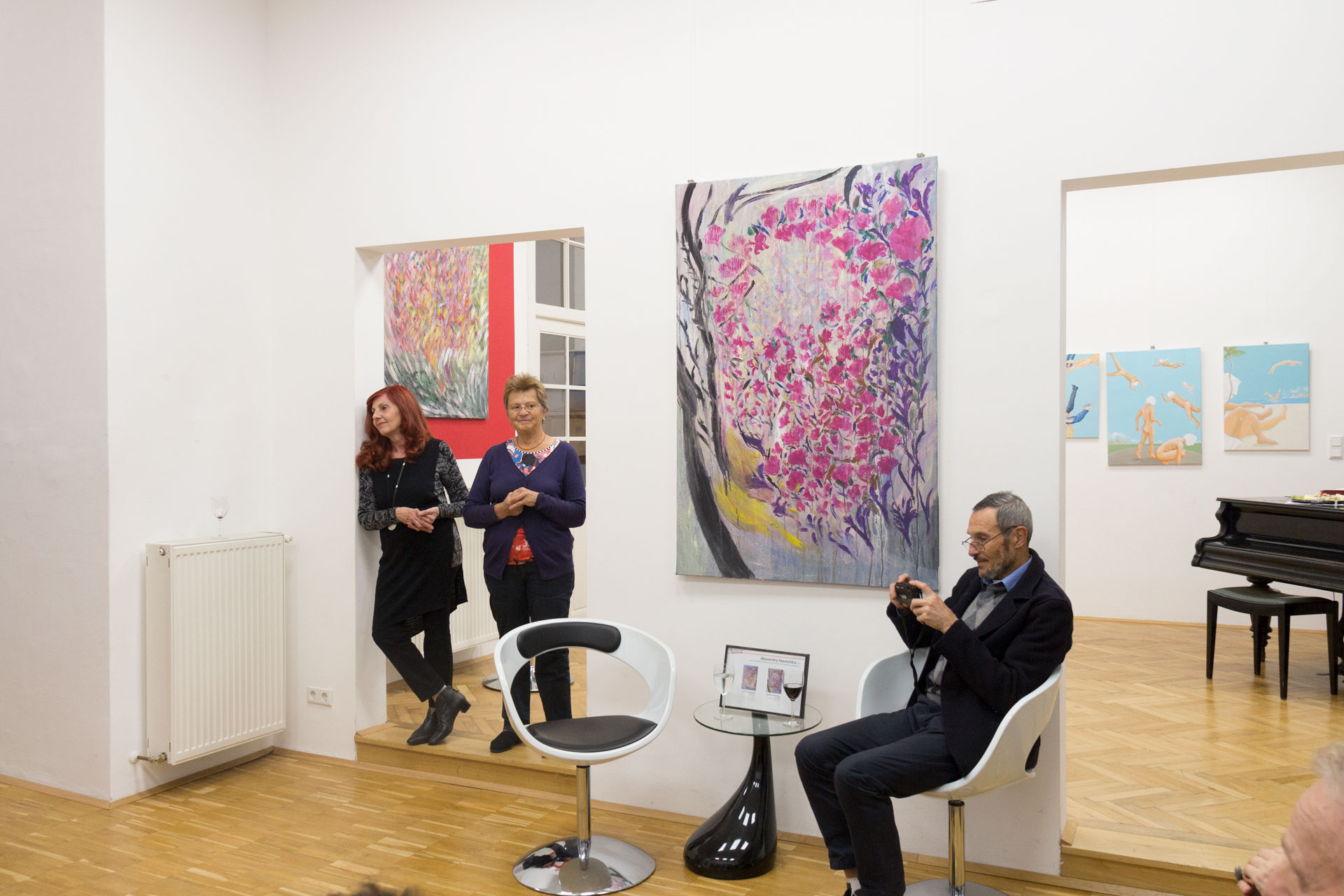 In der Oktober-Ausstellung präsentiert die BURN-IN Galerie zwei Wiener Malerinnen, die mit ihren Farbenspielen sehr verschiedene Bilder entstehen lassen. Die impressionistischen Blumenbilder von Alexandra Hauschka beziehen sich ausschließlich auf die Natur, in den Bildern von Eva Pisa ist die Natur nur ein marginaler Hintergrund für ihre Menschenbilder.