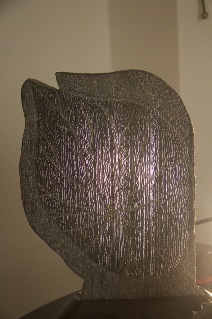 Die Steinskulpturen der Künstlerin leben nicht nur von der haptischen Gestaltung, sondern auch von Glasfasern und Mineralgesteinen, die ihre Lichtsteine enthalten. Diese weitere Dimension ergibt eine Transluzenz, die in den Skulpturen bei Schatten, Sonnen- und Kunstlicht eine jeweils andere Erscheinungsform erzeugt.
