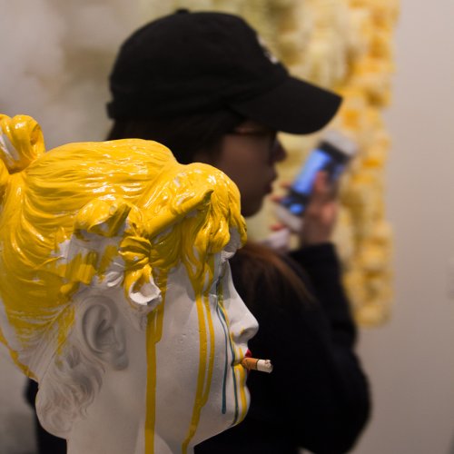 Schon beim Einstieg in den Transport-Lift wird es klar, dass die NADA eine Messe der anderen Art ist. Lagerhallen-Charme beherbergt viel junge Kunst, auch die zahlreichen Besucher gehören vor allem der jungen Generation an.