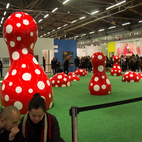 Unter der Leitung von Benjamin Genocchio sind für die ARMORY SHOW 71 Neuaussteller und Rückkehrer gewonnen worden. Neue Formate wie INSIGHT mit Solo- und Zweierausstellungen und PLATFORM für großformatige Skulpturen und Installationen bereichern die großzügig aufgebrochenen Flächen. Dadurch bieten sich für die unglaubliche Menge an Besuchern auch komfortable Durchgänge durch die Stände der 209 ausstellenden Galerien. Der Platz in der Mitte von Pier 94 beeindruckt mit einer Installation von Yayoi Kusama mit großen roten Skulpturen mit weißen Polka-Dots in einer künstlichen Gartenlandschaft. Die Installation mit einer Auflage von 5 Arbeiten wurde zum Preis von 1 Million Dollar an einen internationalen Sammler verkauft. Obwohl das Verkaufstempo sich verlangsamt hat, zeigt die Atmosphäre der Messetage eine starke Wiederbelebung des New Yorker Platzes.