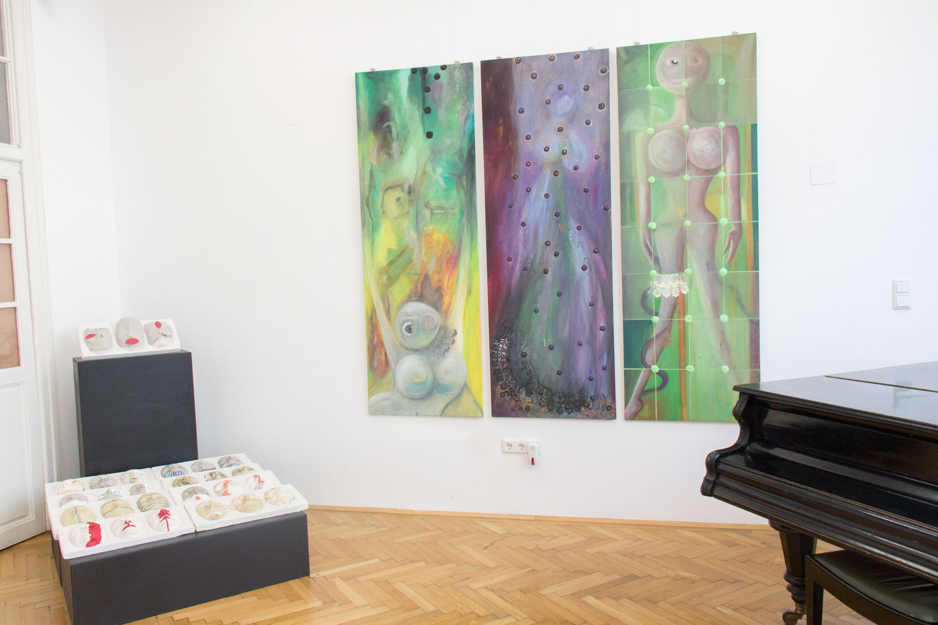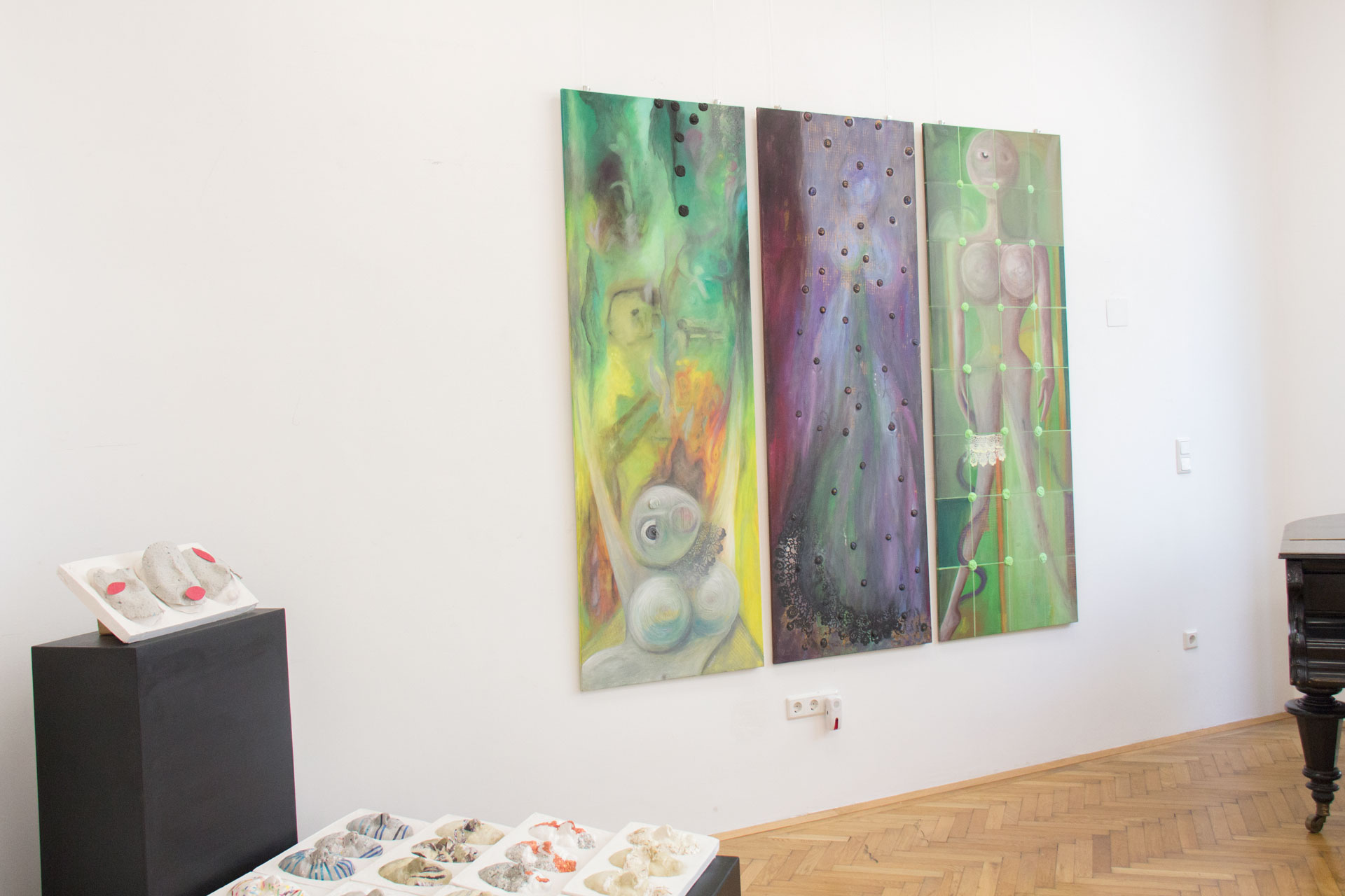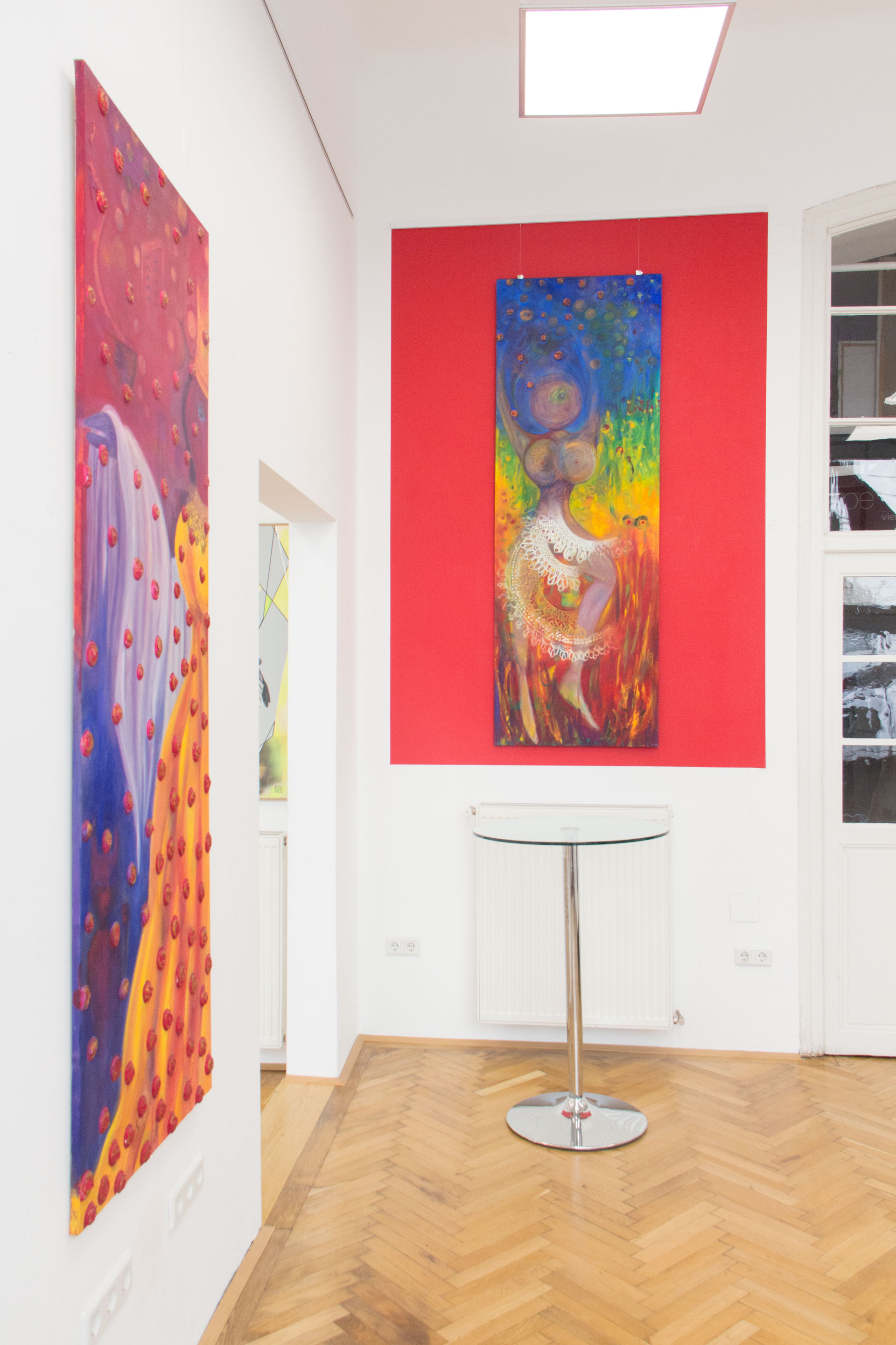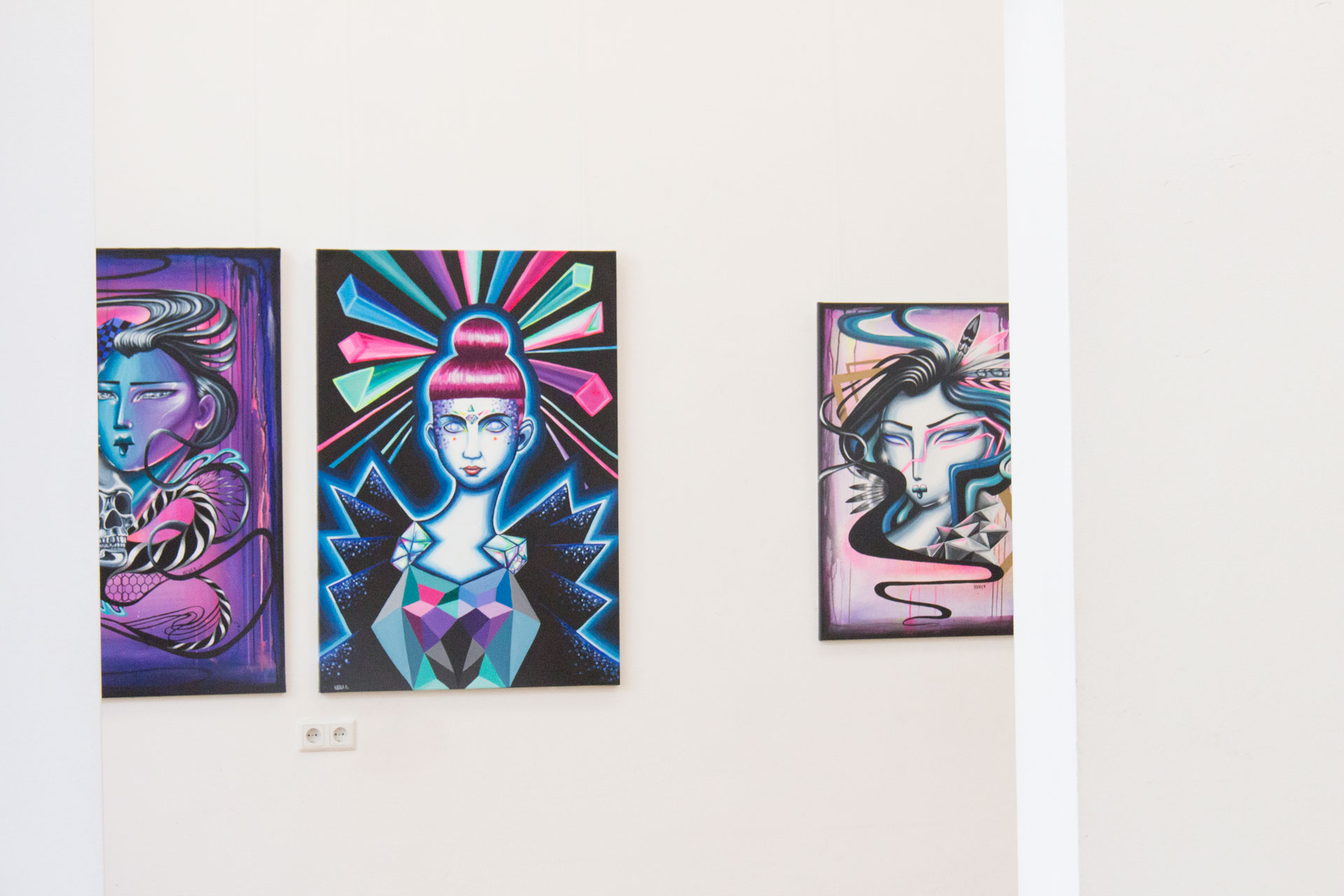 BURN-IN zeigt in dieser Summer-Exhibition Malerei auf Leinwand in Mischtechnik von Dingo Babusch und Kaldea Nakajima, die auf ihren Graffiti-Arbeiten basiert und Malerei und Dreidimensionales von Yoly Maurer.