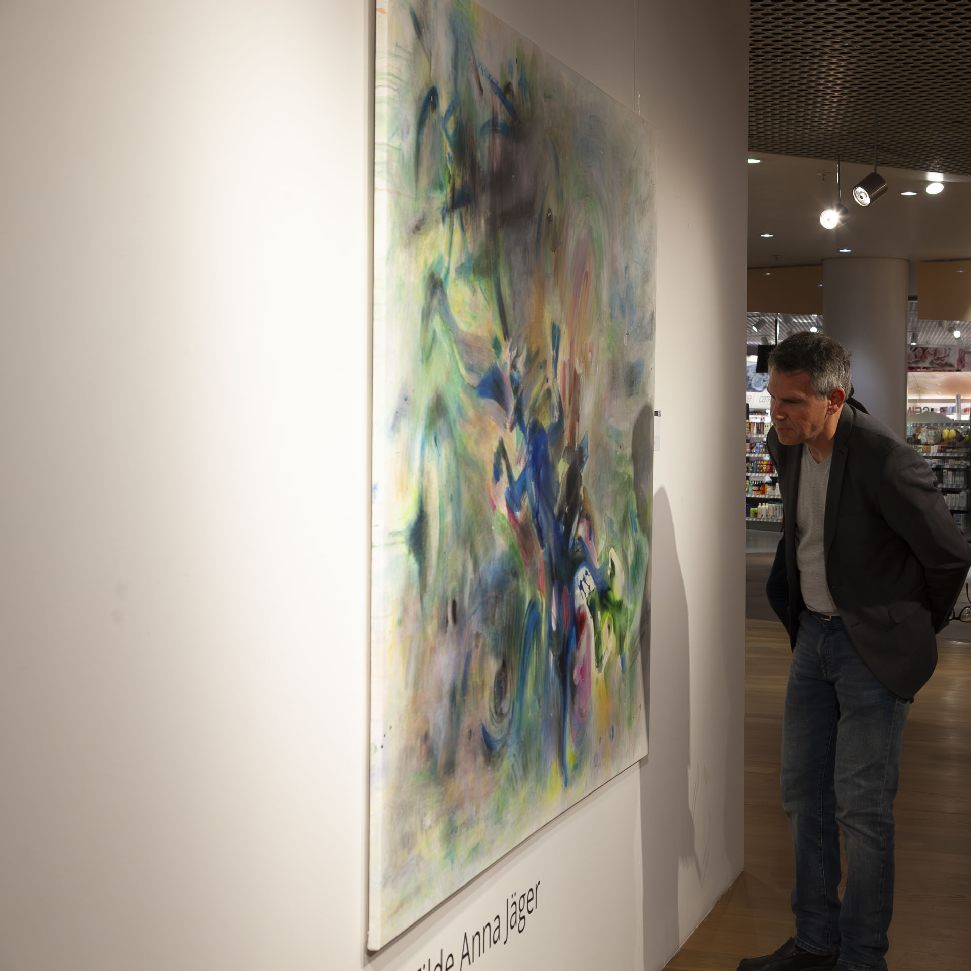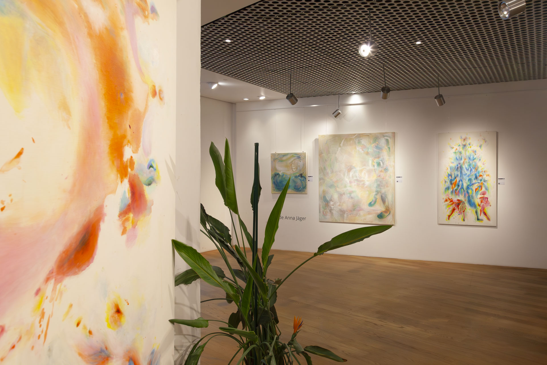 Die Ausstellung setzt den Schwerpunkt auf Jägers unverwechselbaren Stil, der sowohl das Informel als auch den Abstrakten Expressionismus verkörpert. Diese Kunststile betonen das spontane, intuitive Schaffen und zielen darauf ab, das Innere sichtbar zu machen. Jäger arbeitet jenseits der traditionellen Formgebung – sie überträgt ihre Emotionen, Inhalte und tiefenpsychologischen Einflüsse auf großformatige Leinwände, die das Sehen zu einem ganzheitlichen Erlebnis werden lassen.