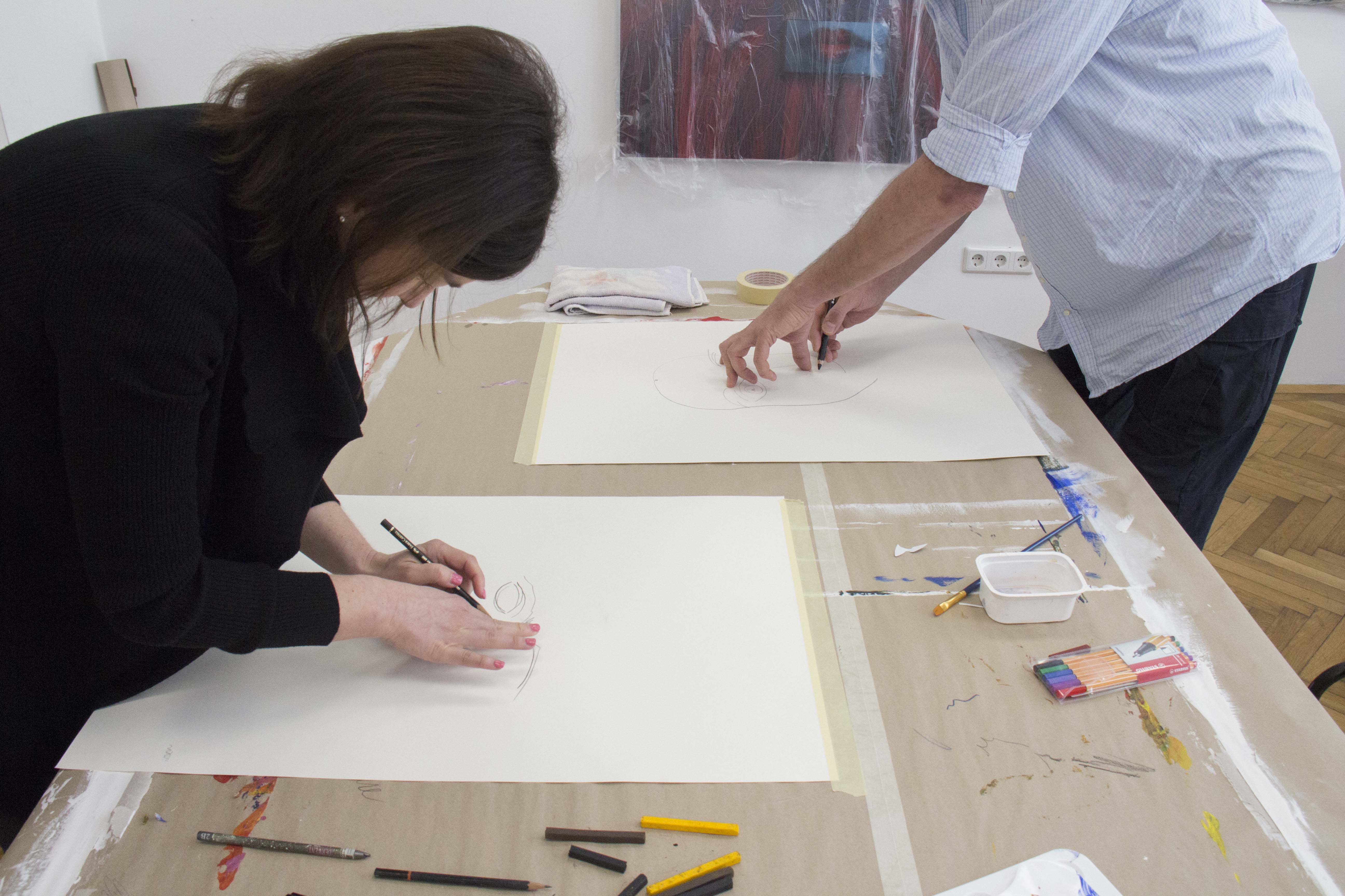 Reflexion einer eigenen Bildsprache und dabei neues Erfahren von theorischen und praktischen Erkenntnissen, z.B. auch beim blinden Agieren mit Farben oder innerhalb des Grafischen wie Linie , Kontur etc.