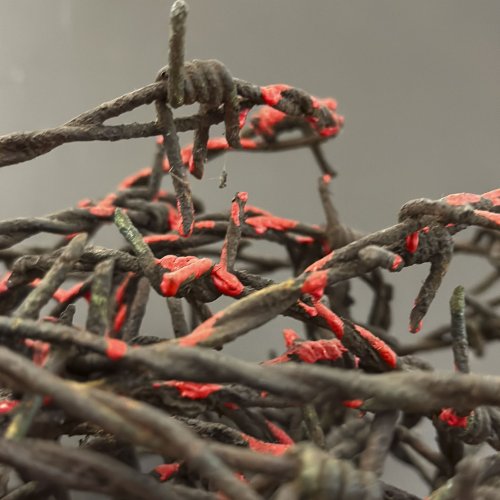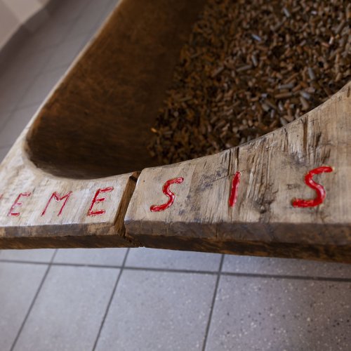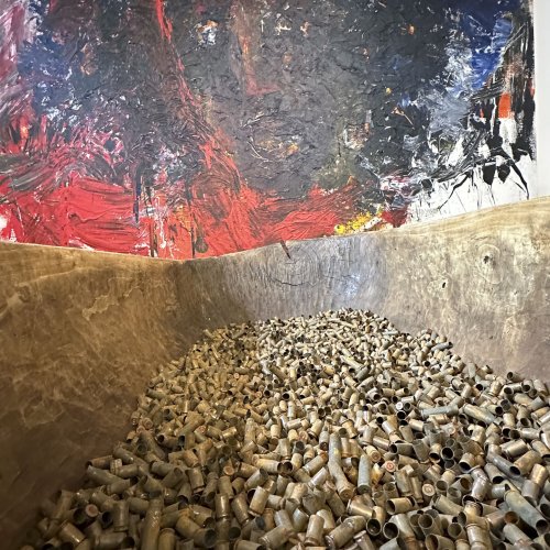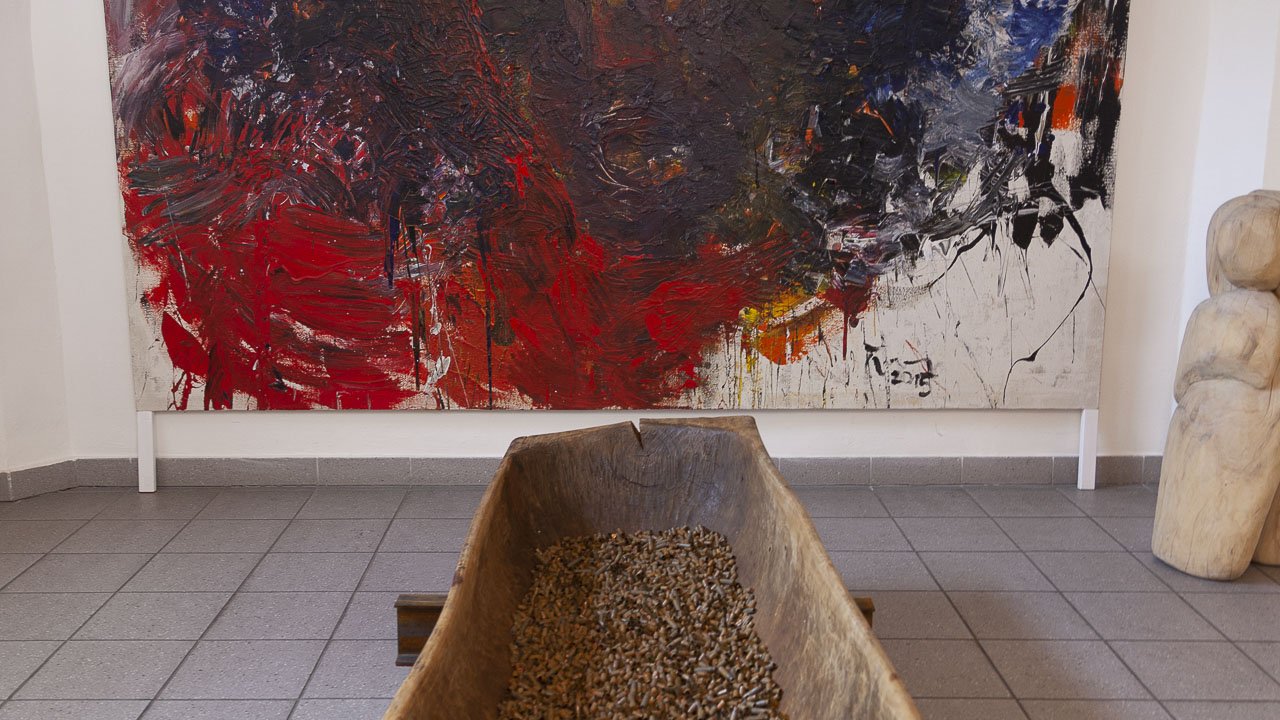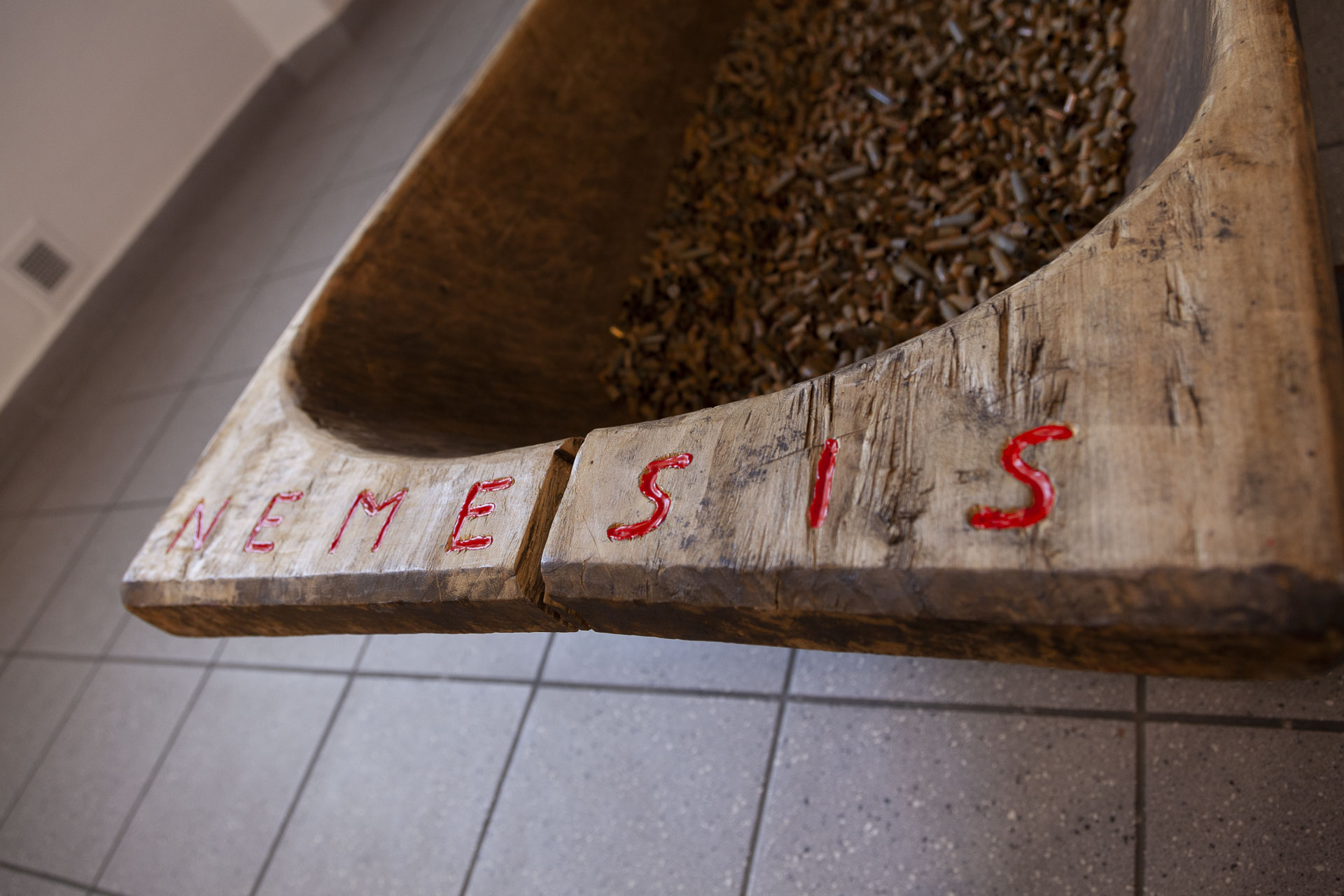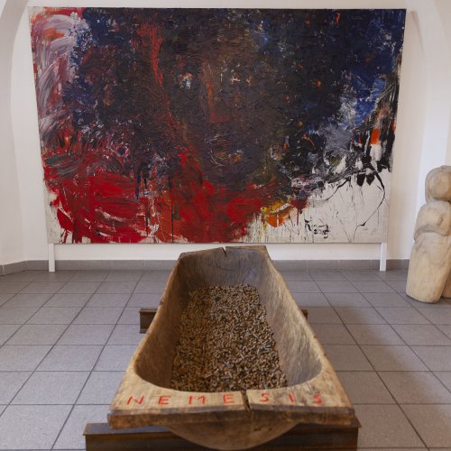 Auf zwei Etagen thematisiert der Künstler Negatives aus Vergangenheit und Gegenwart. Im zentralen Werk Nemesis symbolisieren unzählige leere Patronenhülsen die Millionen Opfer des Holocaust. Der Titel ist Programm und es bedarf keiner weiteren Worte. Intuitiv erfasst der Betrachter die Schrecken dieser Zeit.