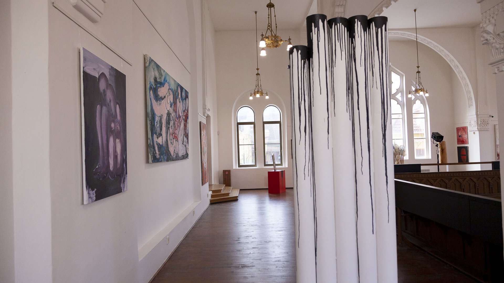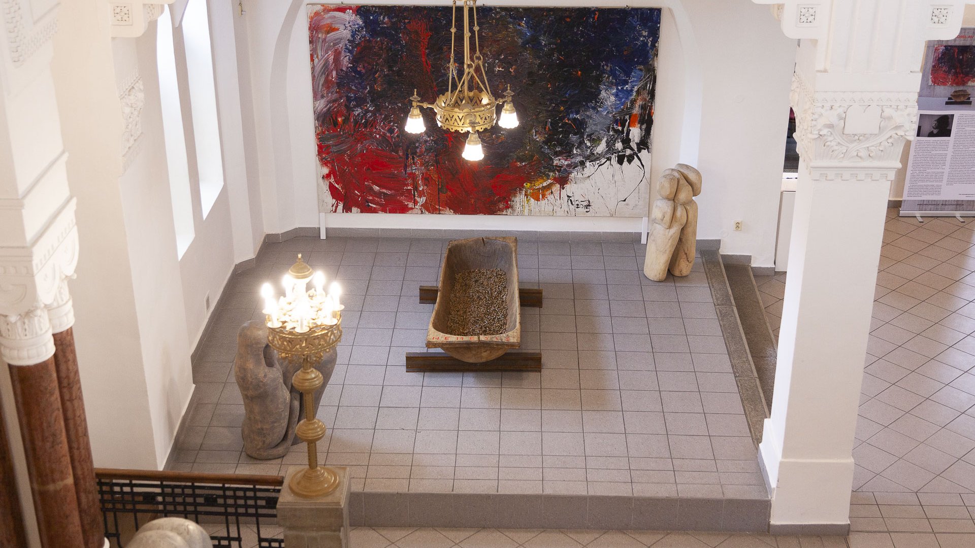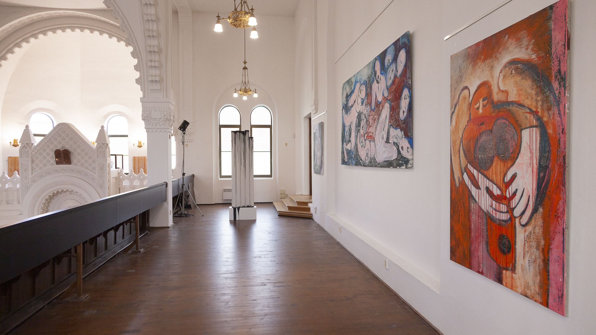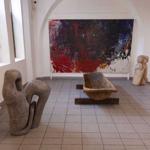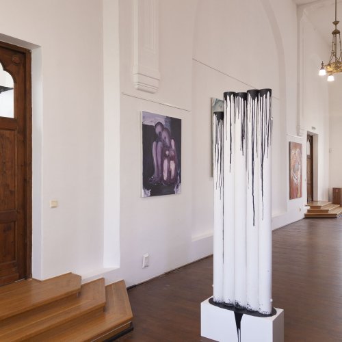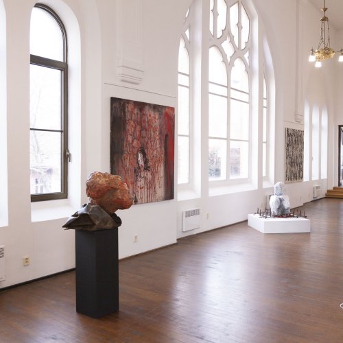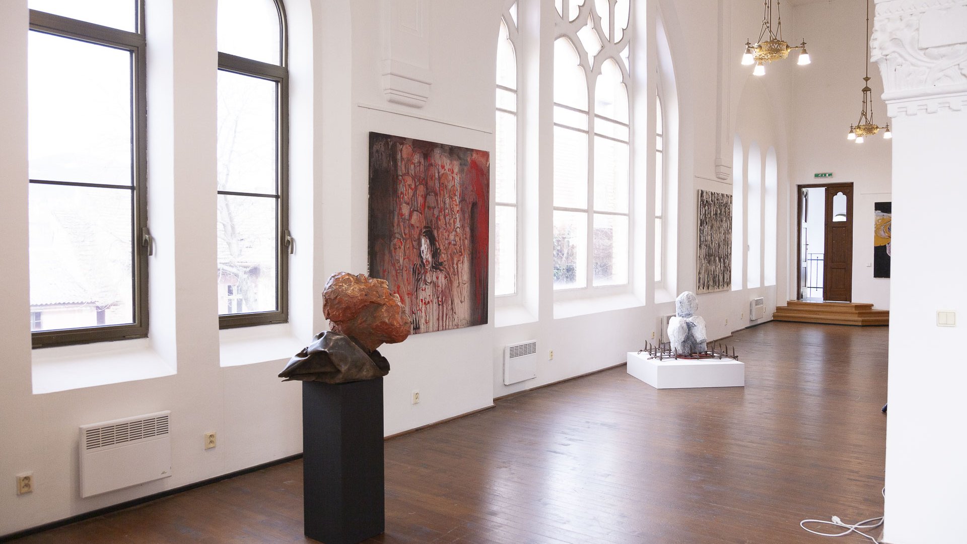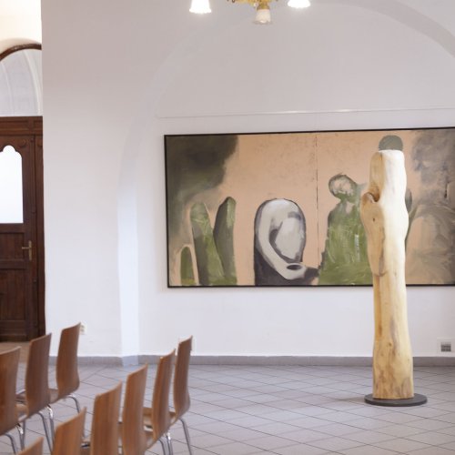 In dieses Interieur hat der Künstler Ladislav Černý seine Kunstwerke - Malerei, Skulptur und Installationskunst (2008 - 2022) - eingefügt, die kontinuierlich mit dieser spirituellen Atmosphäre korrespondieren.