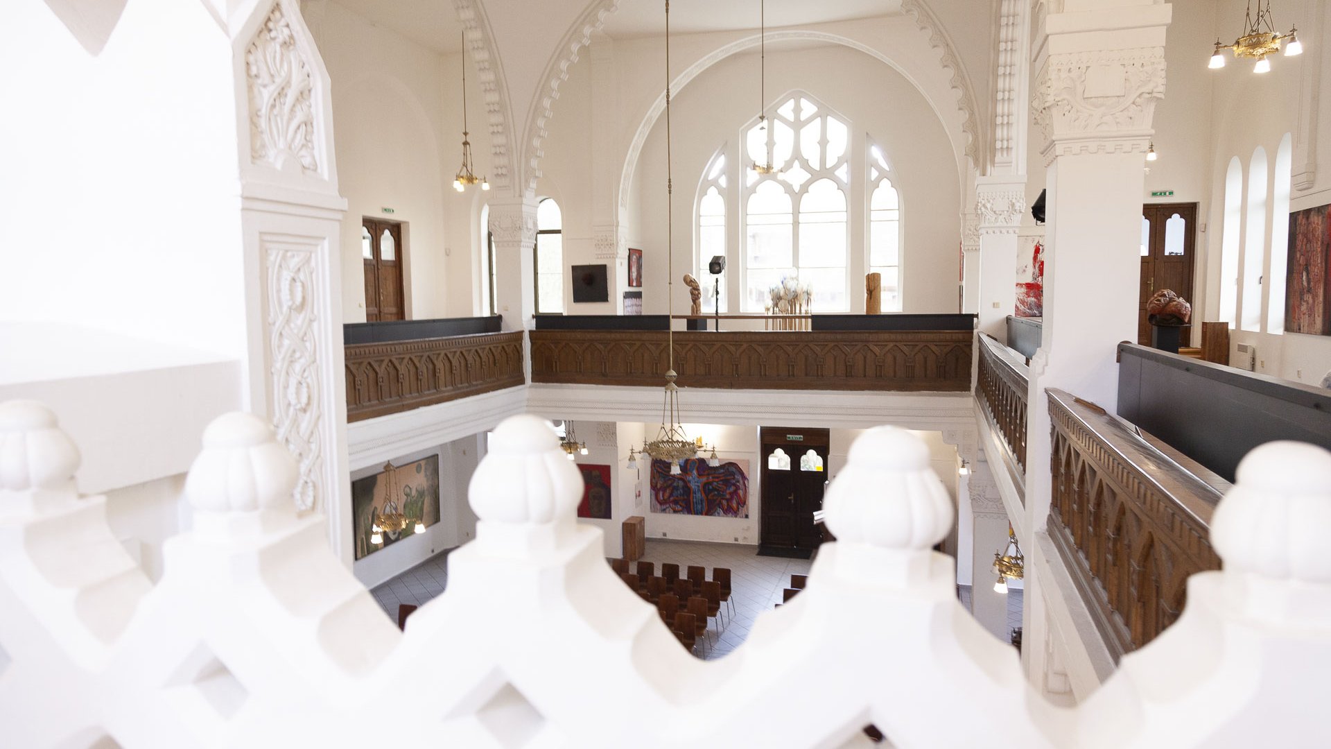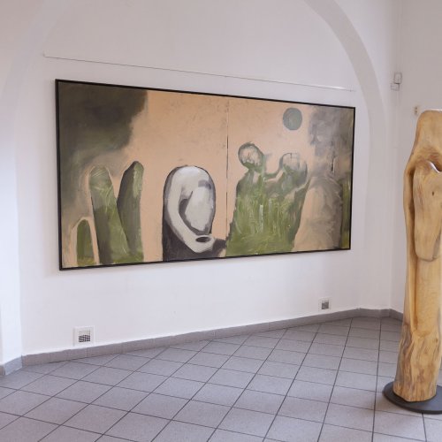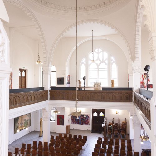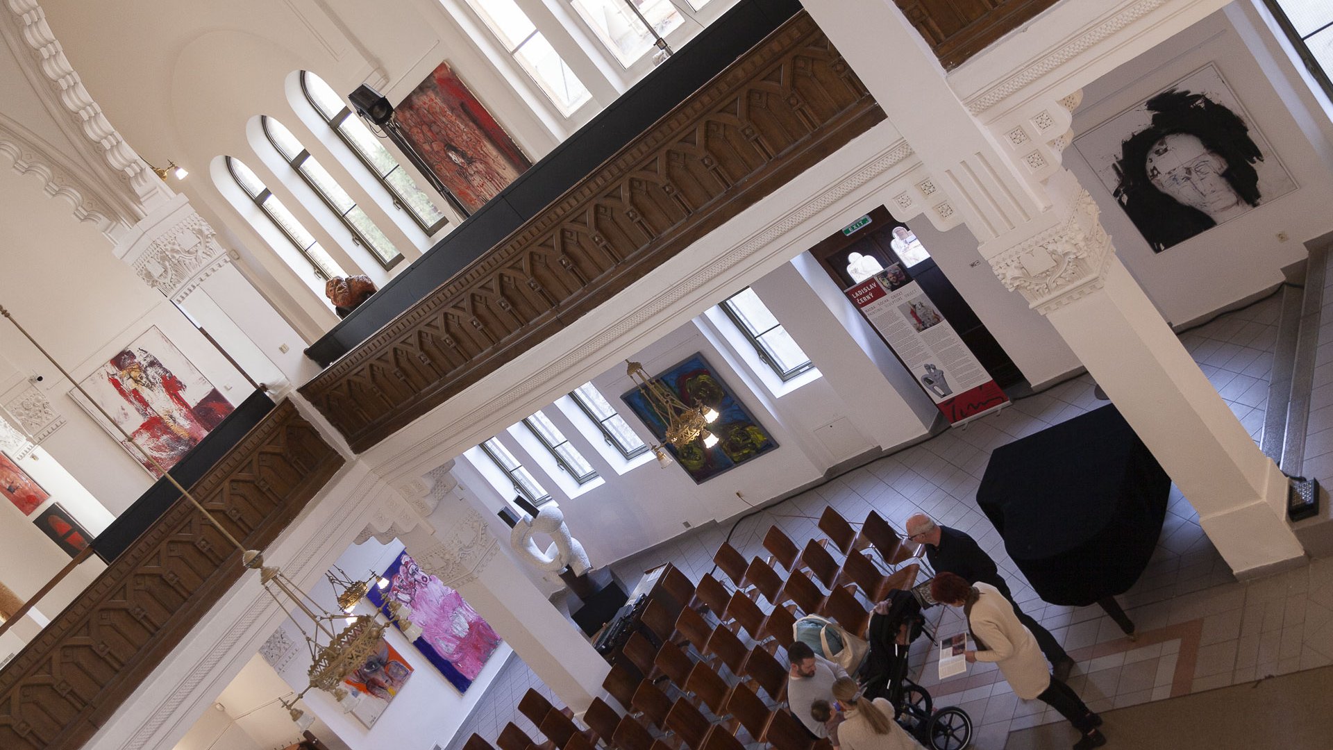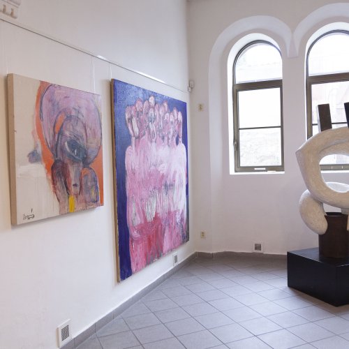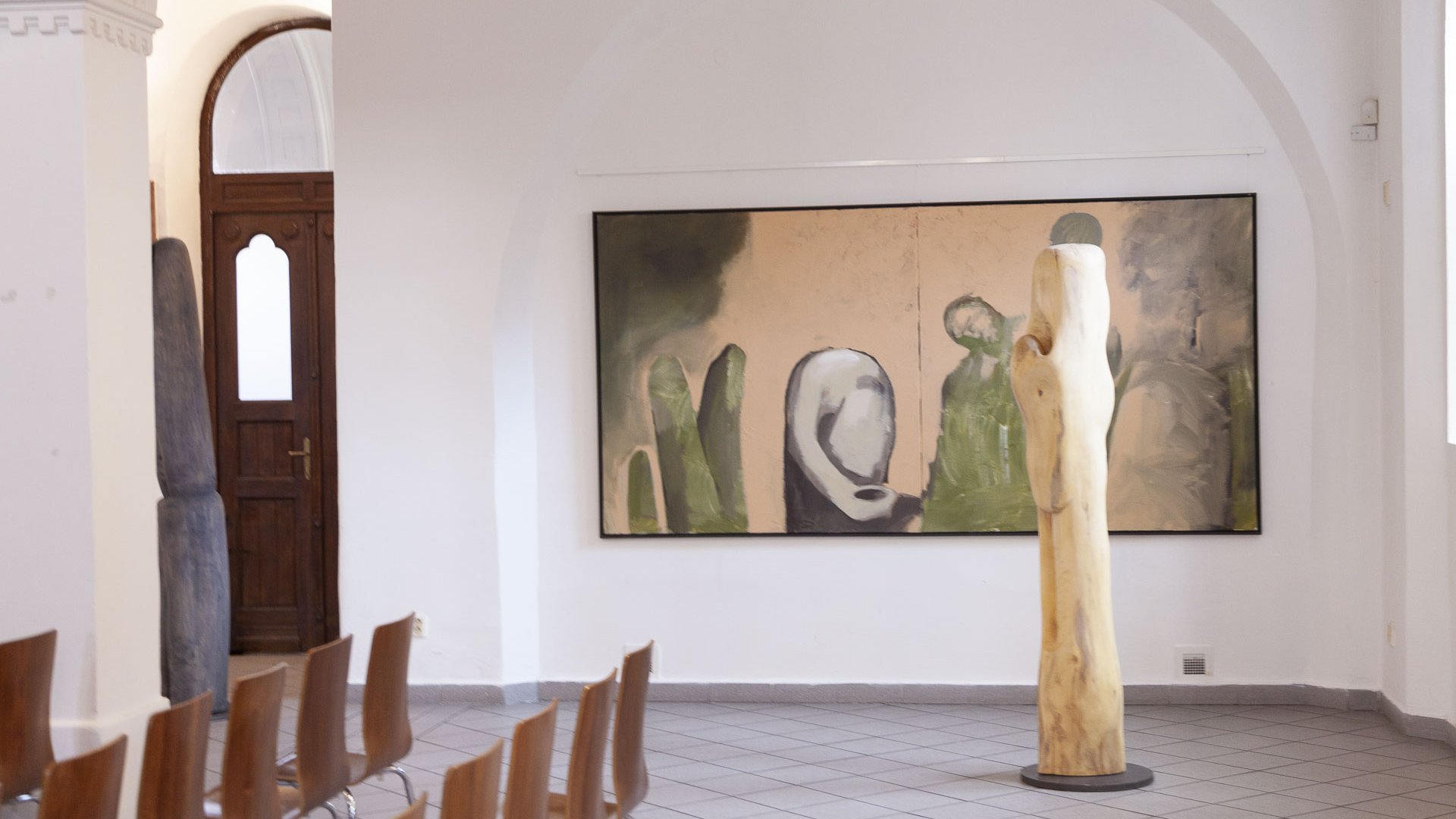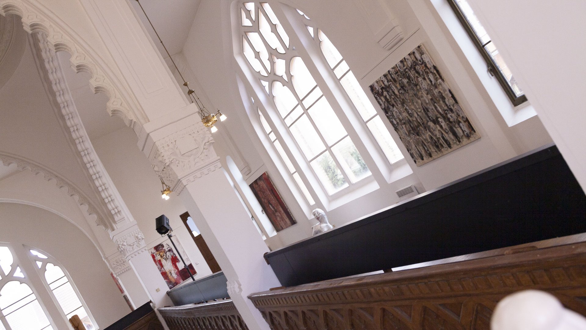 In dieses Interieur hat der Künstler Ladislav Černý seine Kunstwerke - Malerei, Skulptur und Installationskunst (2008 - 2022) - eingefügt, die kontinuierlich mit dieser spirituellen Atmosphäre korrespondieren.