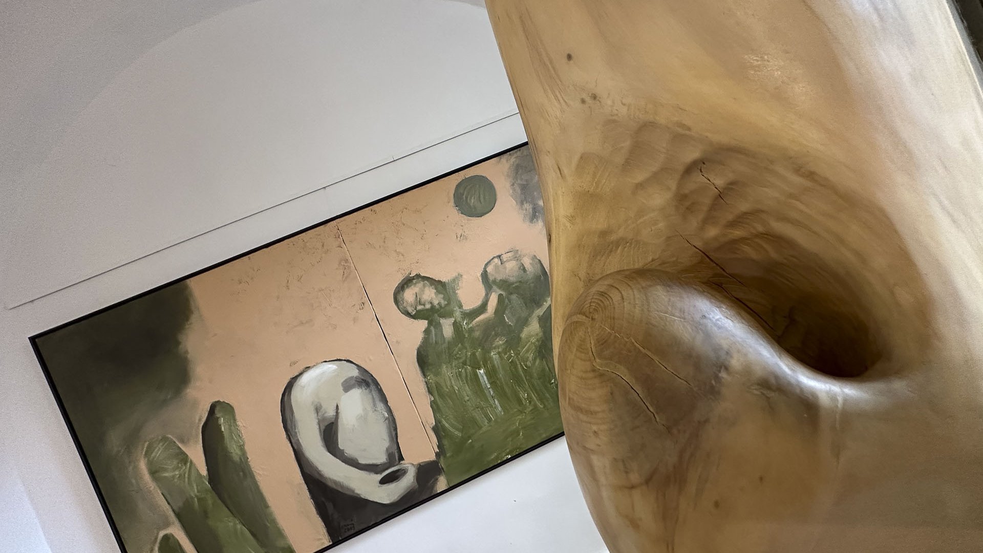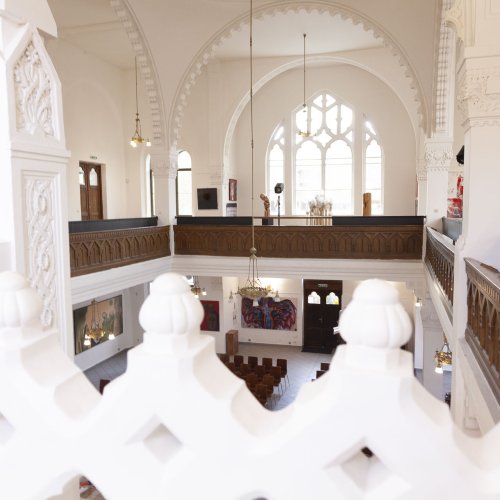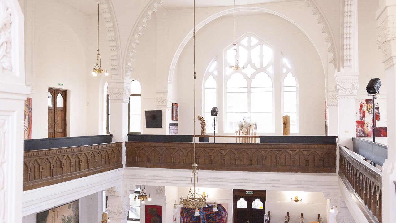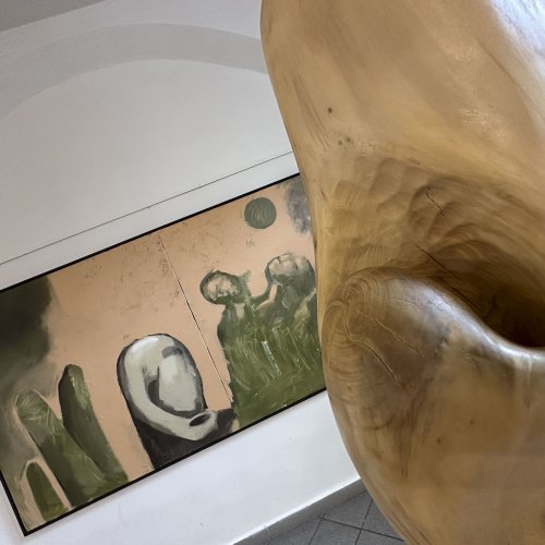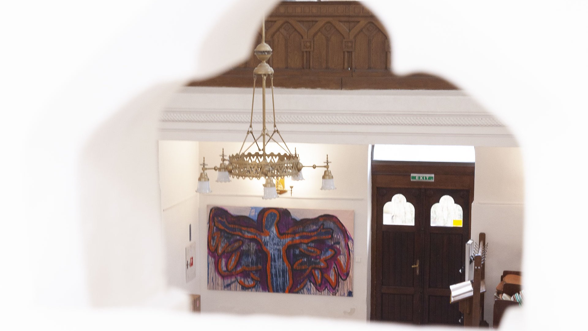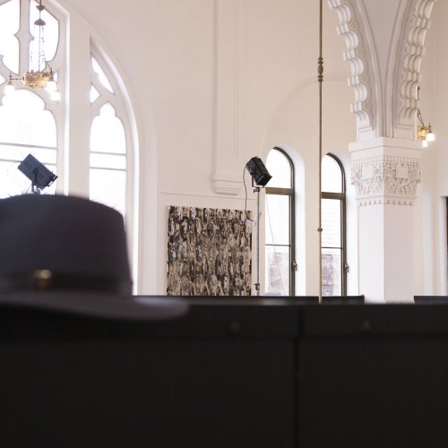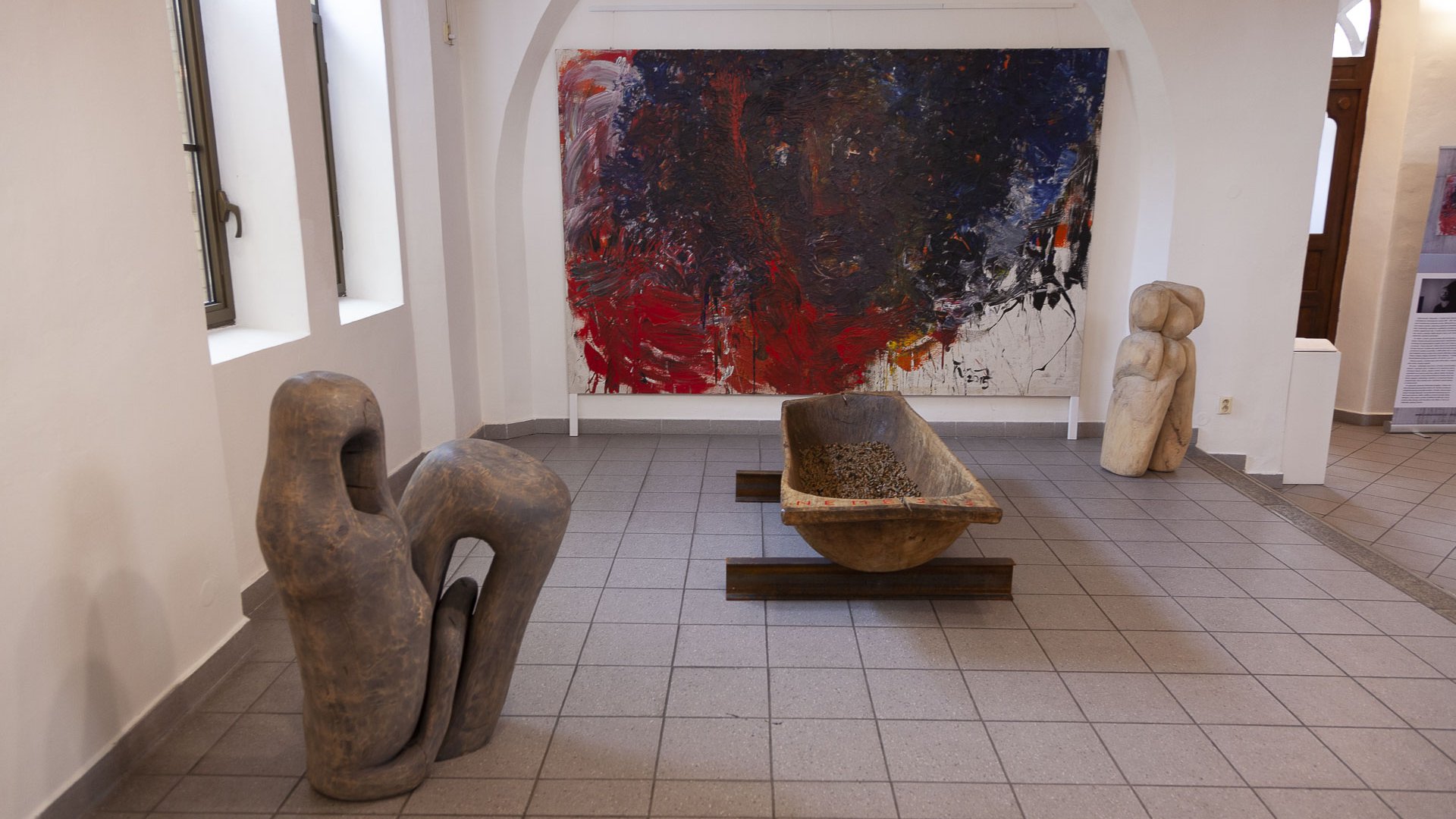 In dieses Interieur hat der Künstler Ladislav Černý seine Kunstwerke - Malerei, Skulptur und Installationskunst (2008 - 2022) - eingefügt, die kontinuierlich mit dieser spirituellen Atmosphäre korrespondieren.