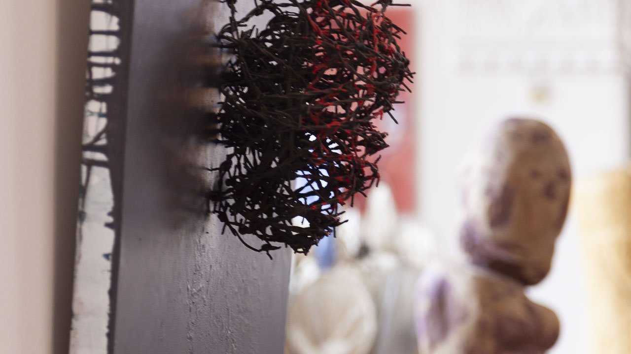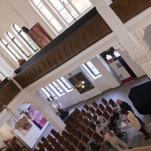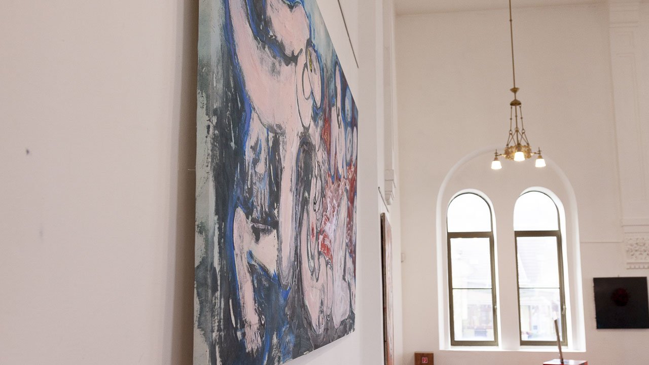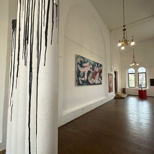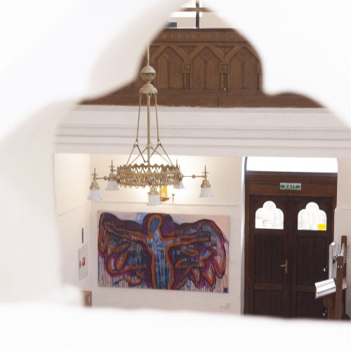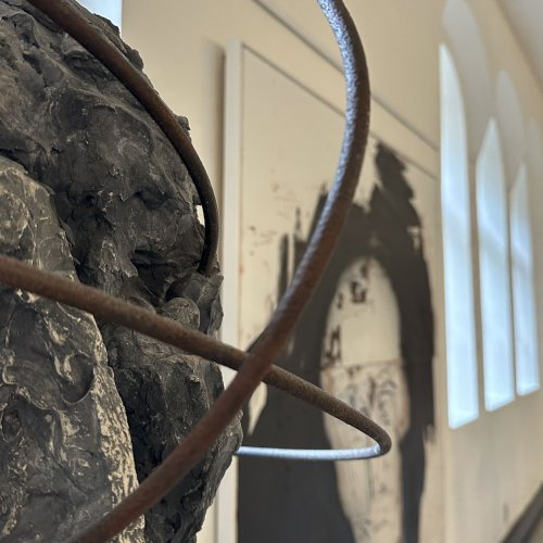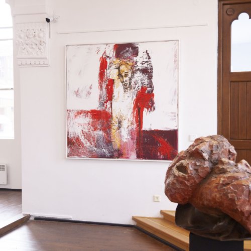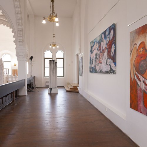 Seine starken Werke (Malerei, Skulptur und Installationen), die zwischen 2008 und 2022 entstanden, setzen ein starkes künstlerisches Statement und korrespondieren perfekt mit der spirituellen Atmosphäre des sakralen Raumes.