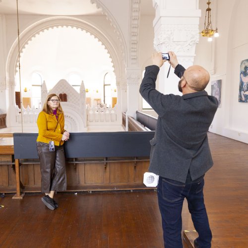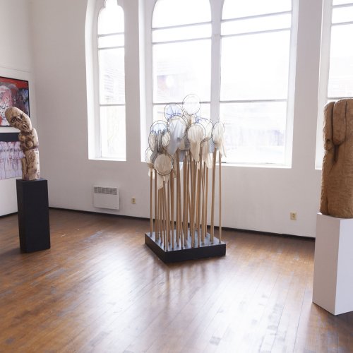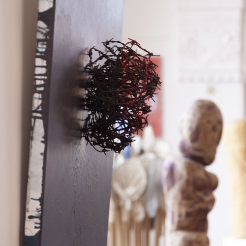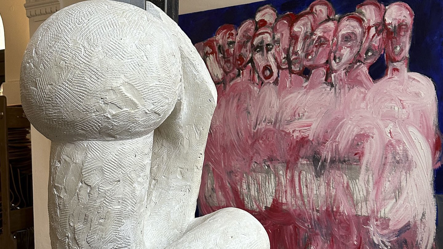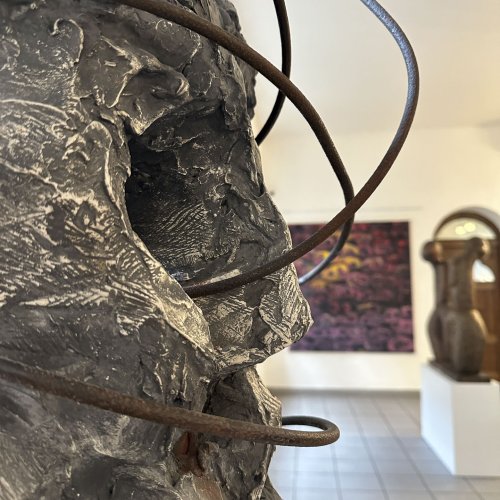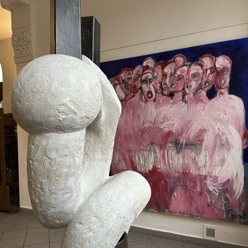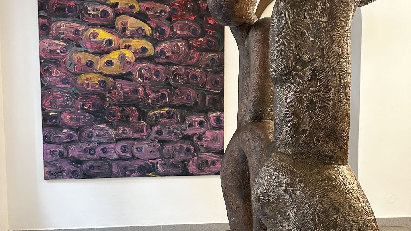 Seine starken Werke (Malerei, Skulptur und Installationen), die zwischen 2008 und 2022 entstanden, setzen ein starkes künstlerisches Statement und korrespondieren perfekt mit der spirituellen Atmosphäre des sakralen Raumes.