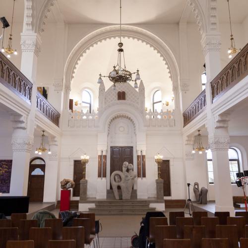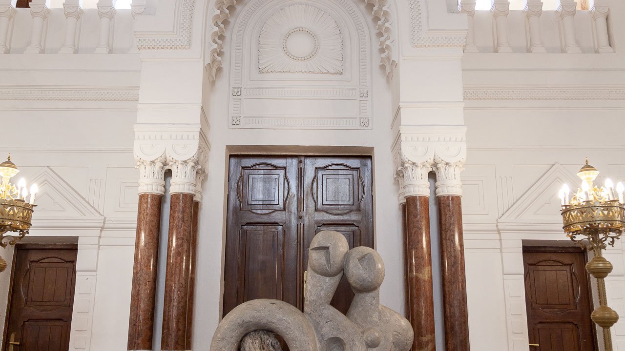OHNE WORTE, aber mit Respekt, betrete ich die Schwelle der Nitra-Synagoge, die zwischen 1909 und 1911 vom Architekten Lipót Baumhorn erbaut wurde.