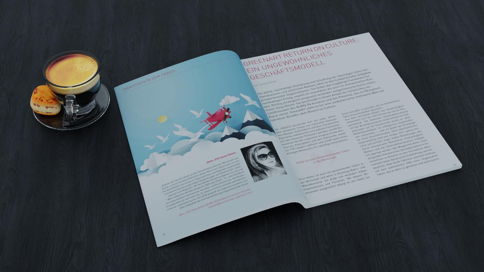In der aktuellen Ausgabe 124 der Zeitschrift LO Lernende Organisation für Relationales Management und Organisation (Herausgeberin IRBW, Dr. Sonja Radatz) - Themenschwerpunkt Geschäftsmodell: NEU - verfasste Sonja Dolzer einen vierseitigen Artikel, indem sie über lebendige Unternehmenskulturen, sinnliche Marken, materielle und immaterielle Werte und den Kontext zur strategische Kunst (GreenART) berichtet. Dabei beschreibt sie den holistischen BURN-IN Ansatz und zeigt, welch bedeutendes Potential im Ökosystem Kunst steckt. GreenART für eine ausbalancierte, kultivierte Welt mit lukrativer Rendite, dem Return on Culture. Ein ungewöhnliches Geschäftsmodell mit enormen Drive.