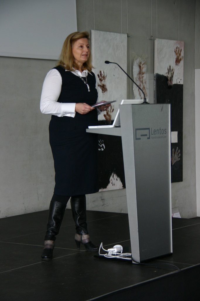 Renate Polzer überzeugte durch Ihre einfühlsame und pointierte Rede, in der sie über ihren, aber auch den Zugang ihrer Kolleginnen zum Thema Kunst und Empathie sprach.