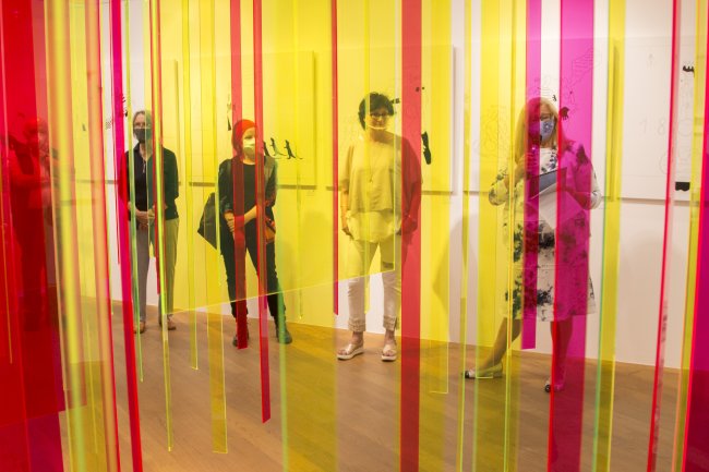 Isabelle Habegger greift die Bewegung in ganz anderen Form und in ganz anderem Zusammenhang auf. Mit den Arbeiten Vom Flow der Persephone und der Installation Klang der Natur, die 2020 für einen Wettbewerb der Schweizer Botschaft in Wien eingereicht wurden, setzt sich die Schweizerin mit der Natur und deren Sinnlichkeit auseinander. Auch Habegger pendelt häufig zwischen den Polen. In der BURN-IN Soloausstellung 2016 setzte sie sich mit dem Bewussten und Unbewussten auseinander und präsentierte Bewegliches (monumentale kinetische Skulpturen) und Statisches. Diesmal nimmt sie Bezug auf den klassischen Mythos vom Raub der Persephone, in der sich Zeus in die Toten-, Unterwelt- und Fruchtbarkeitsgöttin verliebt. Demeter, seine eifersüchtige Schwester, boykottiert die Beziehung und stoppt in ihrer vollen Verzweiflung das Wachstum aller Pflanzen. Die vier Jahreszeiten waren geboren. Eine inspirierende Metamorphose, die mit der fast 200-teiligen Installation in einen spannungsgeladenen Dialog tritt und eine wunderbare Aura schafft, die das Publikum gefangen nimmt und bewegt.
