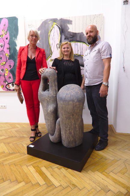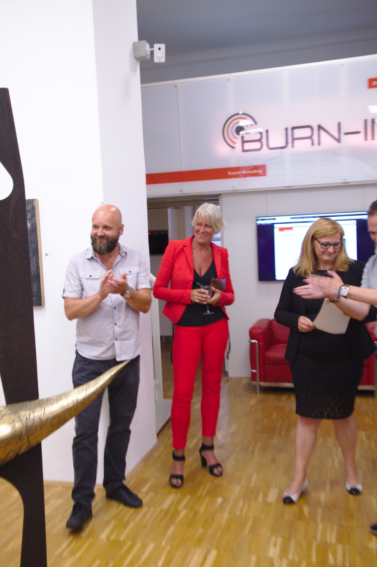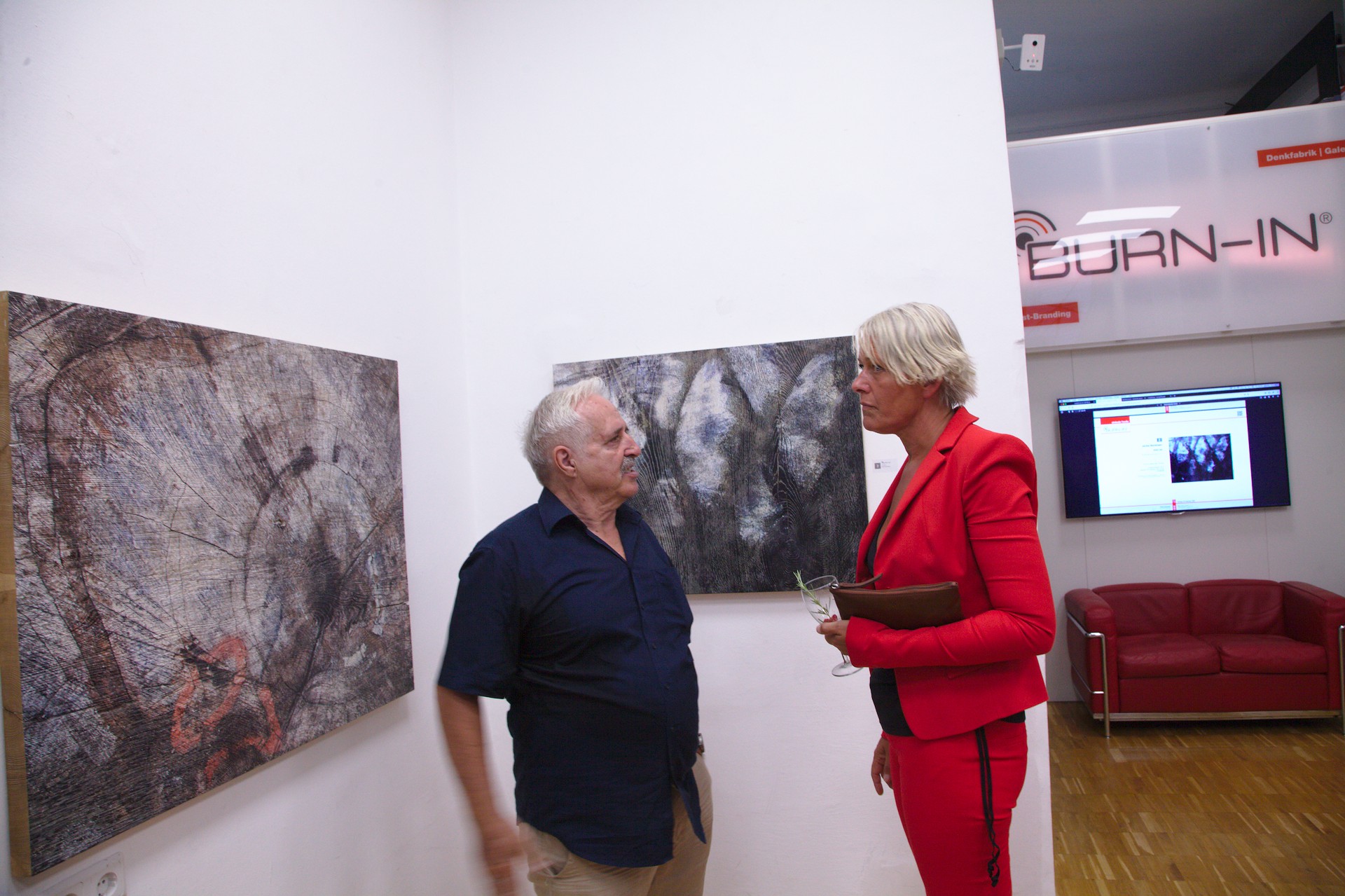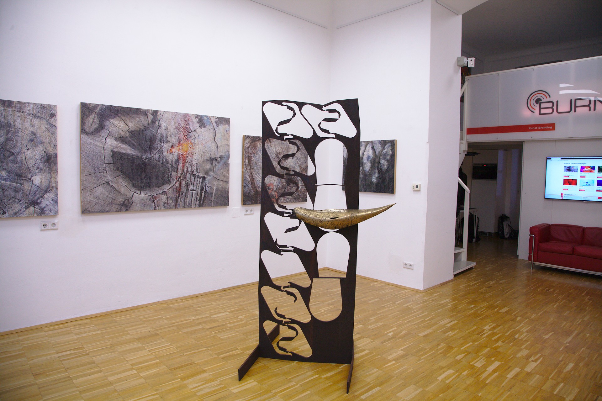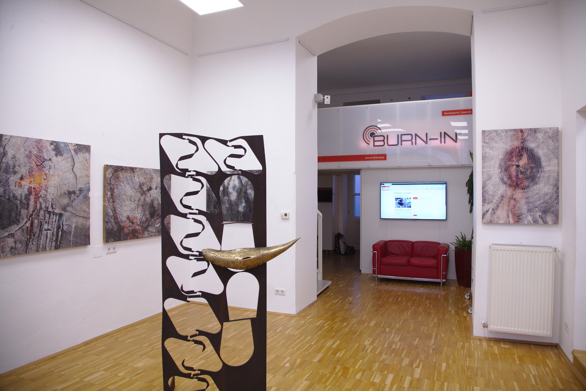 Die monumentalen, starken Bronze-, Stahl- und Holz-Skulpturen des Slowaken Ladislav Černý, den BURN-IN ab Juli 2019 fix im deutschsprachigen Raum vertritt, bilden einen starken Kontrapunkt zu Bertelsens Holzarbeiten. Die aktuelle Zungen-Serie, mit den großflächigen, plakativen, vielfach provokanten Arbeiten, befeuert zusätzlich und lässt beim Betrachter Unruhe, bei manchem wahrscheinlich sogar Unsicherheit, aufkommen.