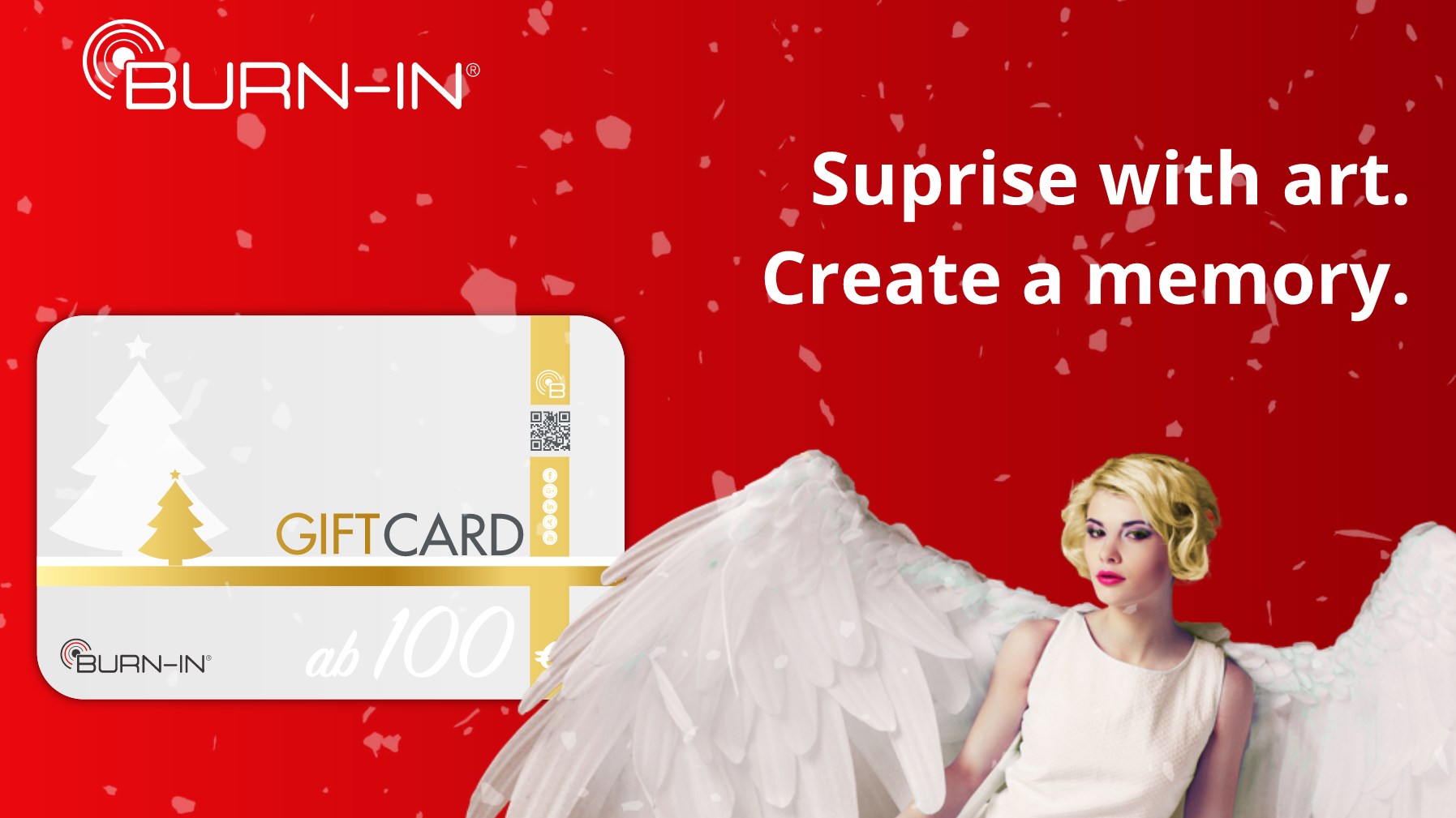 Ideal auch die BURN-IN Geschenkgutscheine. Für alle, die Kunst schenken, aber die Auswahl dem Beschenkten überlassen wollen. Eine glänzende Idee für erfahrene Kunstsammler und Kunsteinsteiger.
