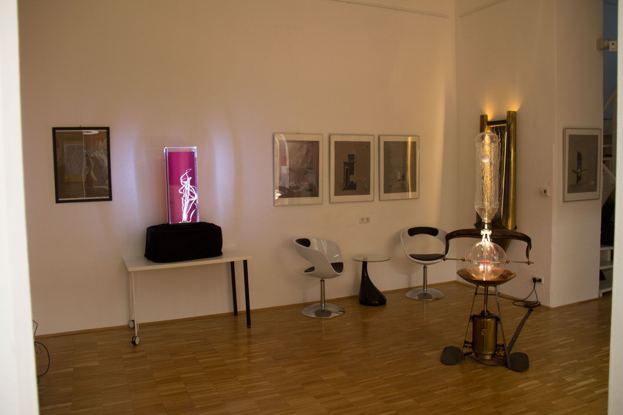 In der Novemberausstellung wagt sich BURN-IN auf völlig unbekanntes Terrain, inszeniert sich völlig neu und zeigt erstmals eine YING-YANG Maschine, einen Pentographen, die Versuchsstation Seegras, an der Wand entlangfließende Wasseradern und sich sanft wiegende Schwingpflanzen. Eine ganz andere Art von Bewegung zeigt sich in den reduzierten Stillleben, in denen sich viele Dinge zu verändern scheinen wie im jahreszeitlichen Wechselspiel der Natur, der Zerstörung und Erneuerung. Hommage an den Hasen, das Jagdstillleben und fruchtige Melonen erscheinen in einer zurückhaltenden Symbolik mit kritischem Ansatz. Die Künstlerin Susanne Opdahl aus München und der Wiener Künstler Gerhard Zsambok arbeiten mit kontrastierenden Materialien und in sehr verschiedenen Techniken. Einiges haben sie aber gemeinsam: Die Neugierde und Impulse aus der Natur.