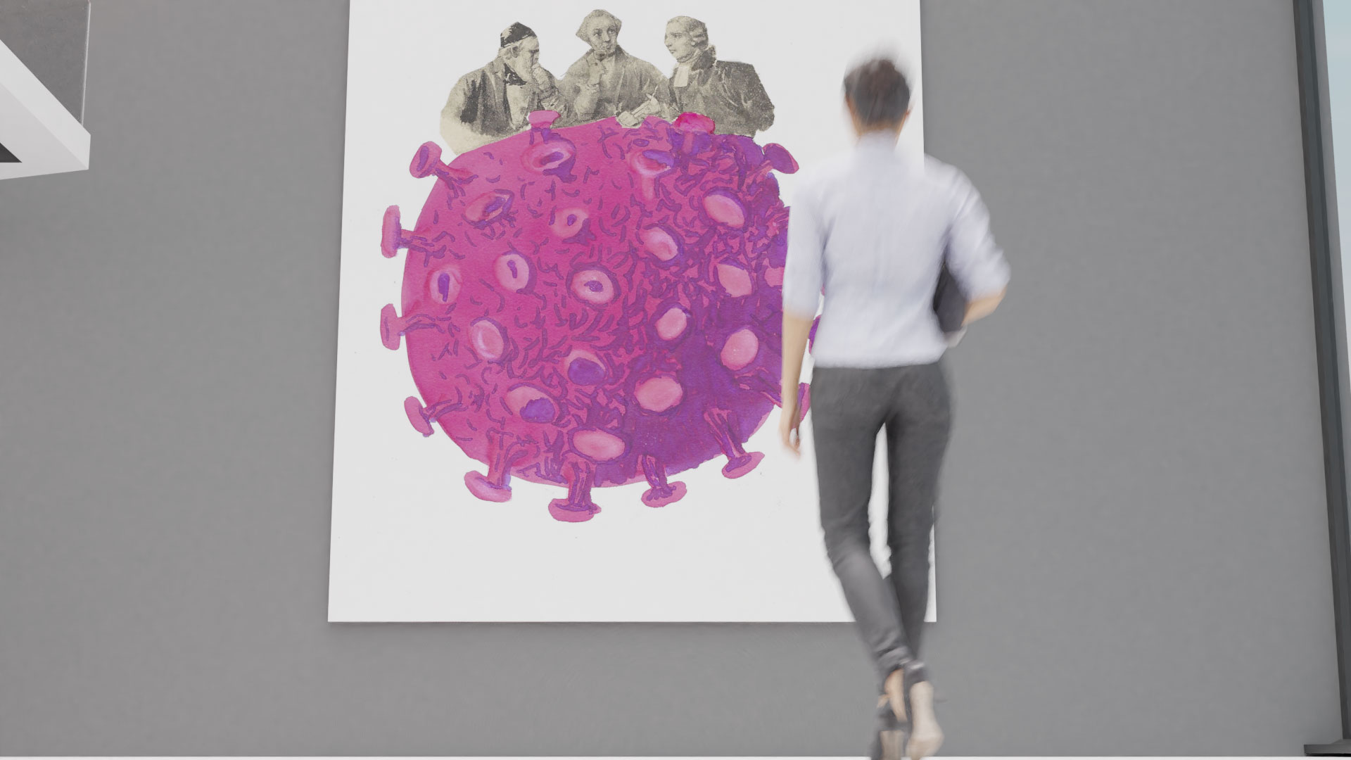Die in Hamburg geborene und seit 20 Jahren in Wien lebende Malerin und Zeichnerin Ellen Semen liefert in COLLA CORONA diesmal keine ihrer wunderbaren Sehnsuchtsbilder einer konfliktfreien Welt. Vielmehr startete sie mitten im ersten Lockdown mit einer höchst eigenständigen Serie - collagierte Arbeiten, die auf COVID referenzieren. Semen arbeitet darin mit Filzstift auf Papier und löst die Farbe später mit Desinfektionsmittel (Alkohol) wieder auf. Das lässt eine Anmutung in Richtung zarter Aquarelle entstehen. Die in die Collagen eingearbeiteten Illustrationen stammen meist aus alten Büchern, die sie auf Flohmärkten findet. Die historischen Zeitdokumente rückt Semen in den Mittelpunkt ihrer Werke, jedoch höchst empathisch und ohne diese jemals damit zu überladen. Damit gelingt ihr die besonders reizvolle Symbiose aus Geschichtsträchtigem mit höchst Aktuellem.