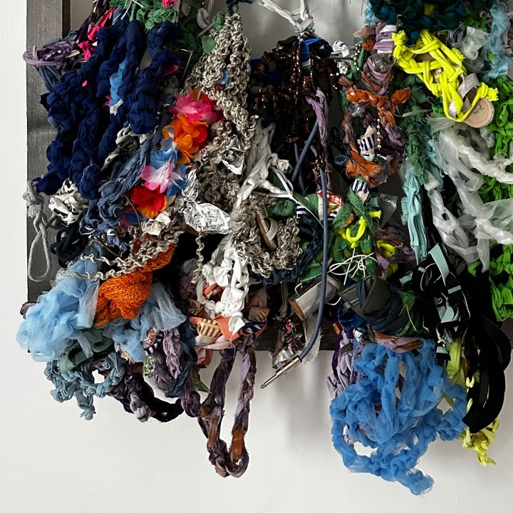 Holzrahmen, Textilien, Kunststoffgegenstände, Schnüre, Draht